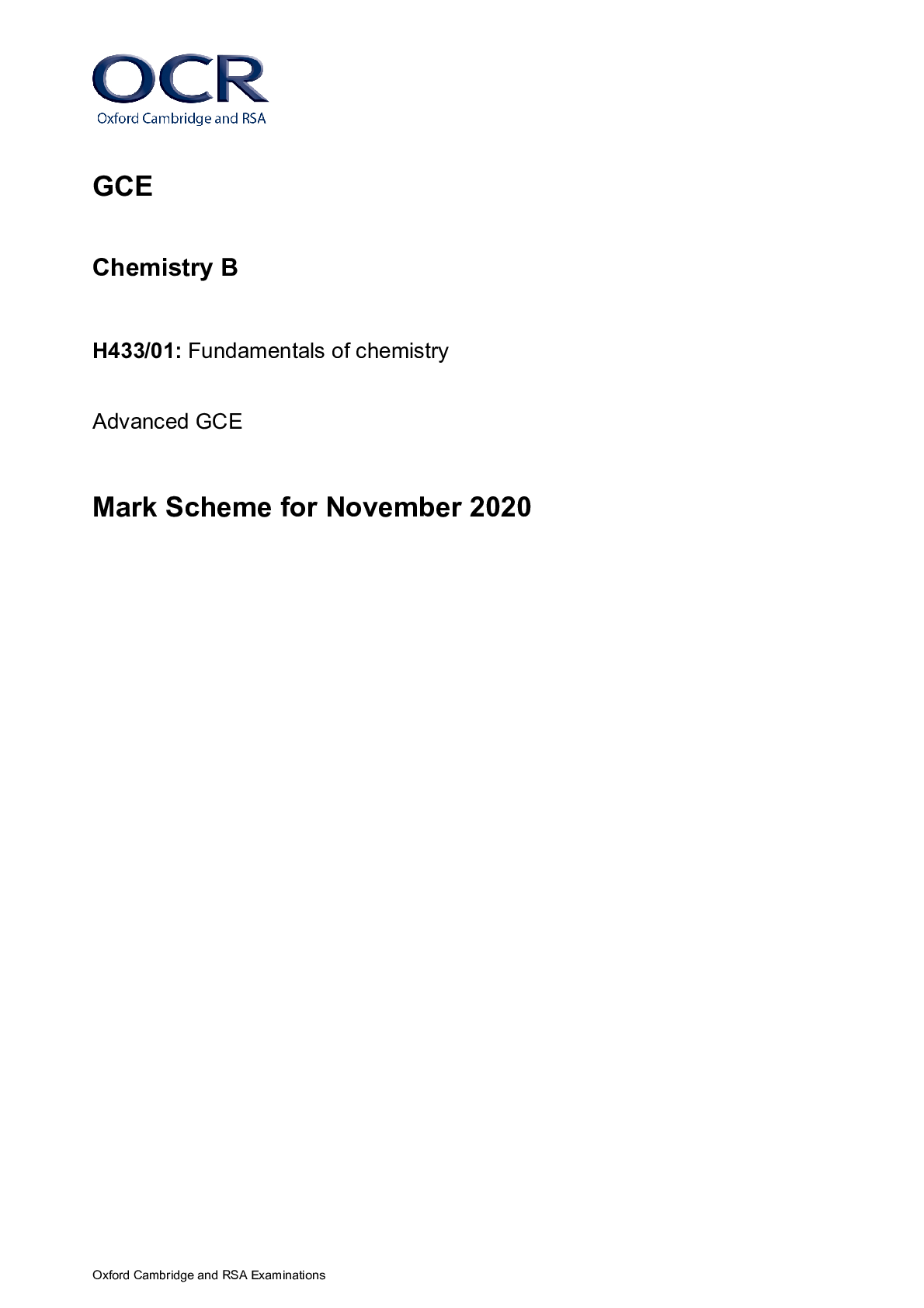 ChemistryGCSE MARK SCHEME  > GCE Chemistry B H433/01: Fundamentals of chemistry Advanced GCE Mark Scheme for November 2020