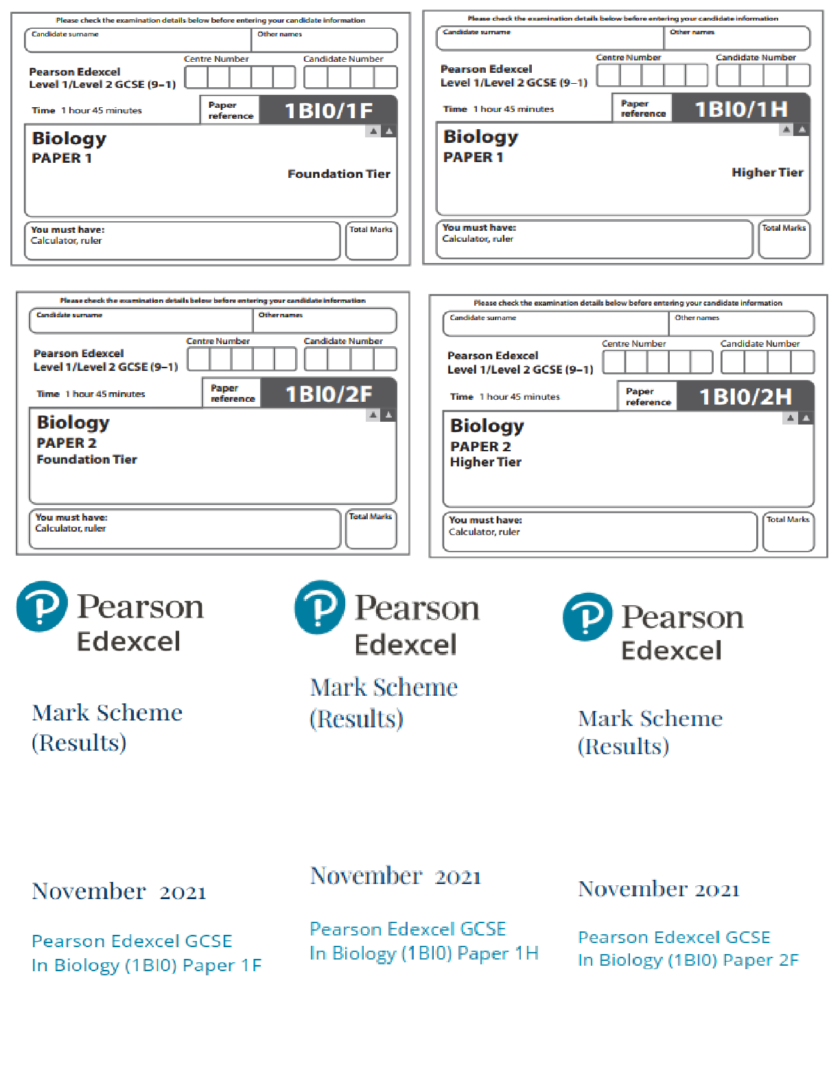 Biology > GCSE MARK SCHEME > Pearson Edexcel GCSE Physical Biology Papers 1BIO 1F, 1H, 2F, 2H, QUESTION PAPERS and MARK SCHEMES. November 2021. (Contains 26 PDF file Download plus modified papers)