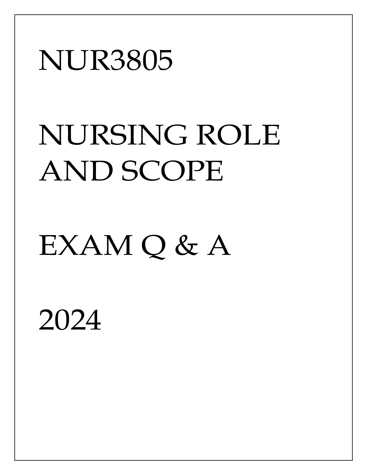 *NURSING > ESSAY > NUR3805 NURSING ROLE AND SCOPE EXAM Q & A 2024