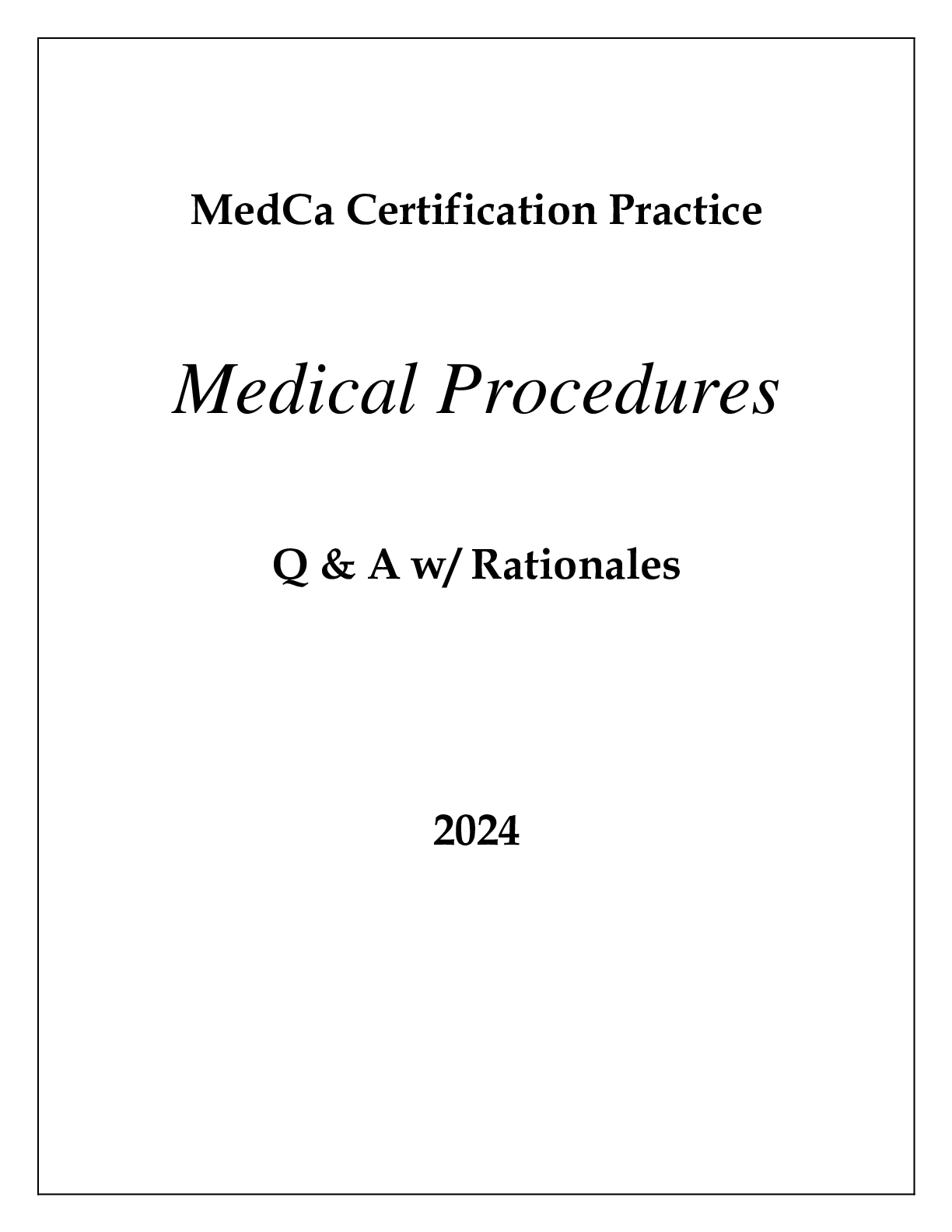*NURSING > ESSAY > MedCa CERTIFICATION PRACTICE MEDICAL PROCEDURES SECTION Q & A WITH RATIONALES 2024
