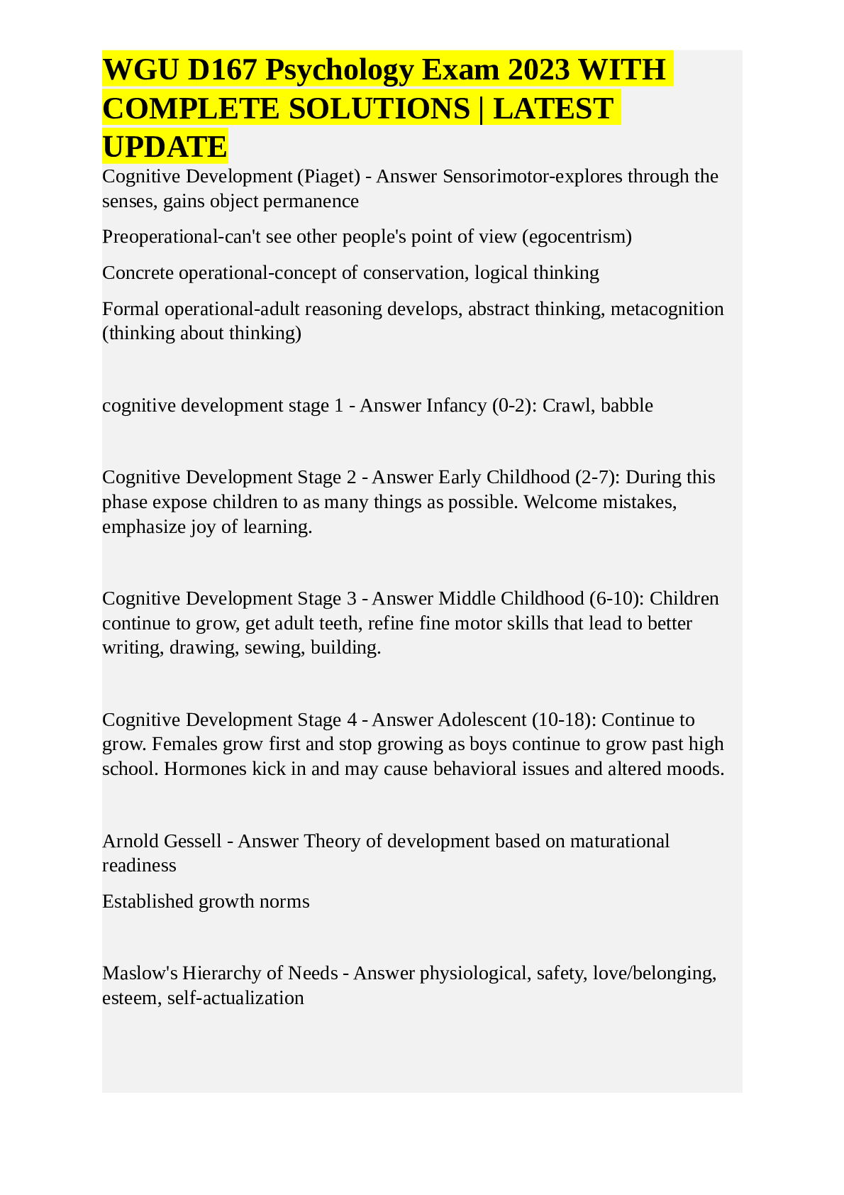 *NURSING > ESSAY > WGU D167 Psychology Exam 2023 WITHCOMPLETE SOLUTIONS LATESTUPDATE