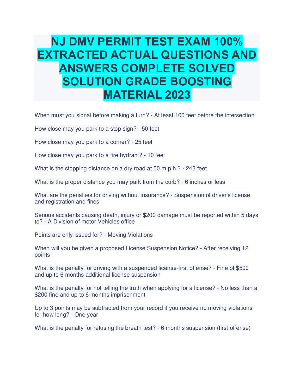 *NURSING > ESSAY > NJ DMV PERMIT TEST EXAM 100%EXTRACTED ACTUAL QUESTIONS ANDANSWERS COMPLETE SOLVEDSOLUTION GRADE BOOSTINGMATERIAL 2023