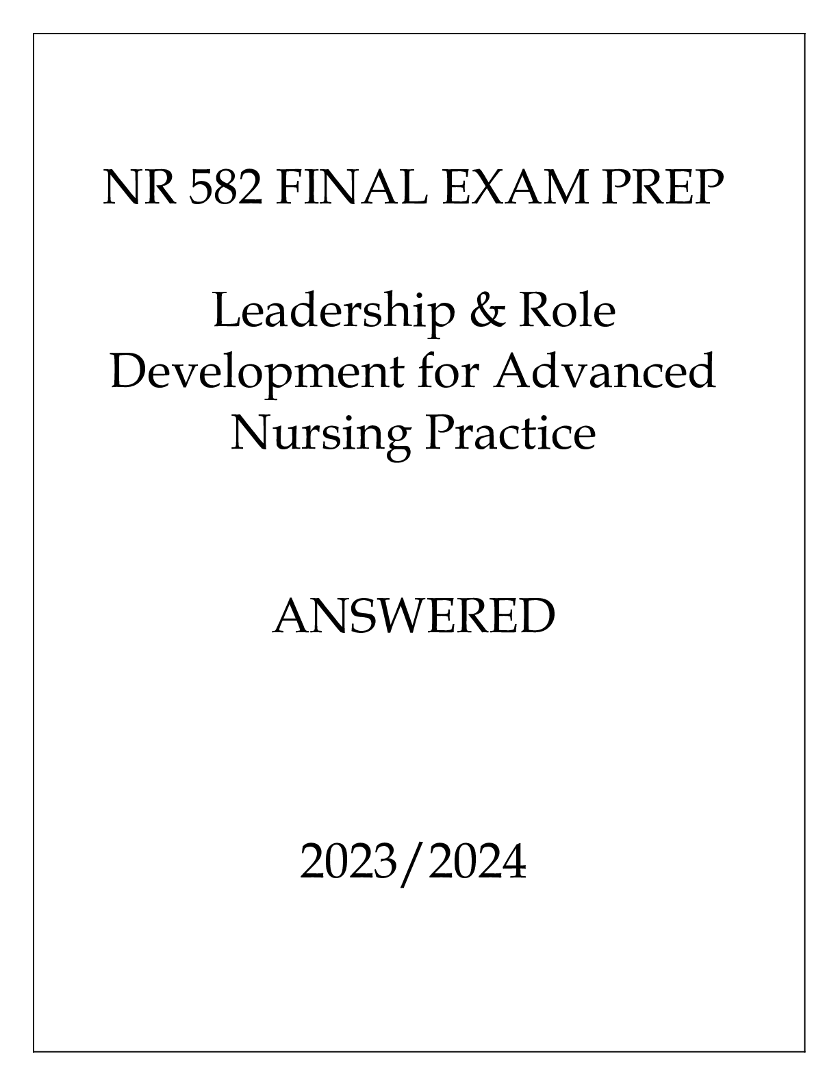 *NURSING > ESSAY > NR 582 FINAL EXAM PREP LEADERSHIP & ROLE DEVELOPMENT ANSWERED 20232024