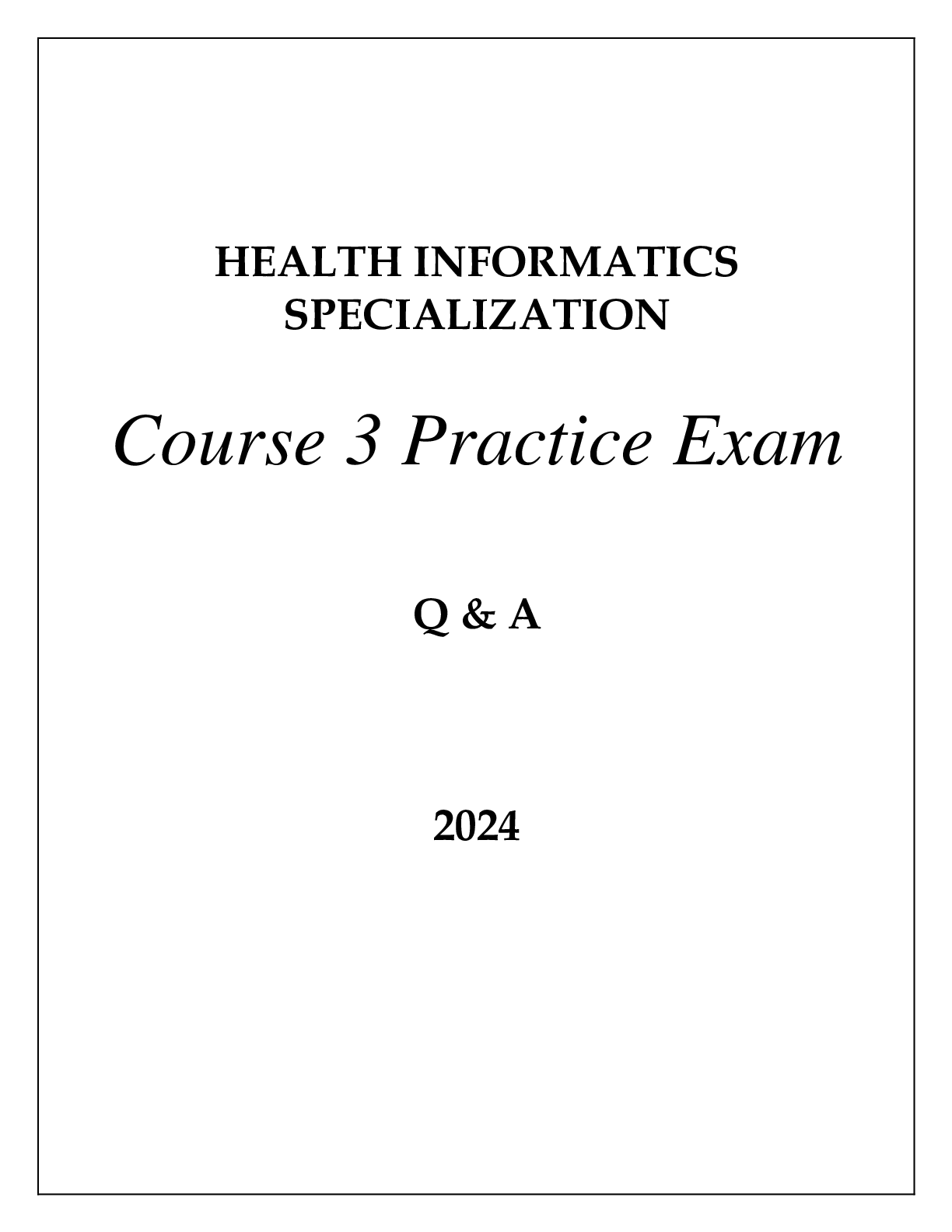*NURSING > ESSAY > HEALTH INFORMATICS SPECIALIZATION COURSE 3 PRACTICE EXAM Q & A 2024