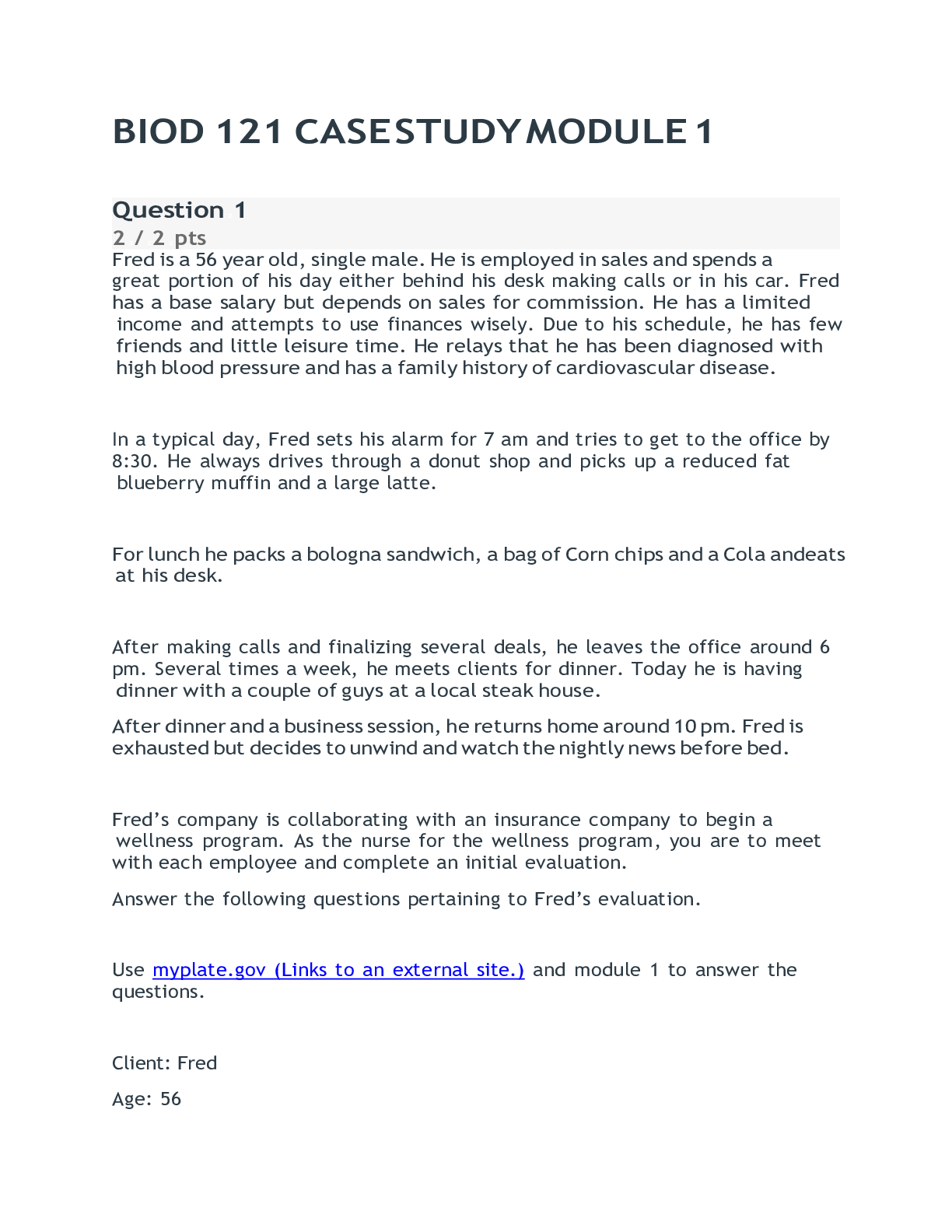 Health Care > ESSAY > BIOD 121 Essentials in Nutrition Module 1 Case Study |Approved & Graded A+ |Latest 2022/2023