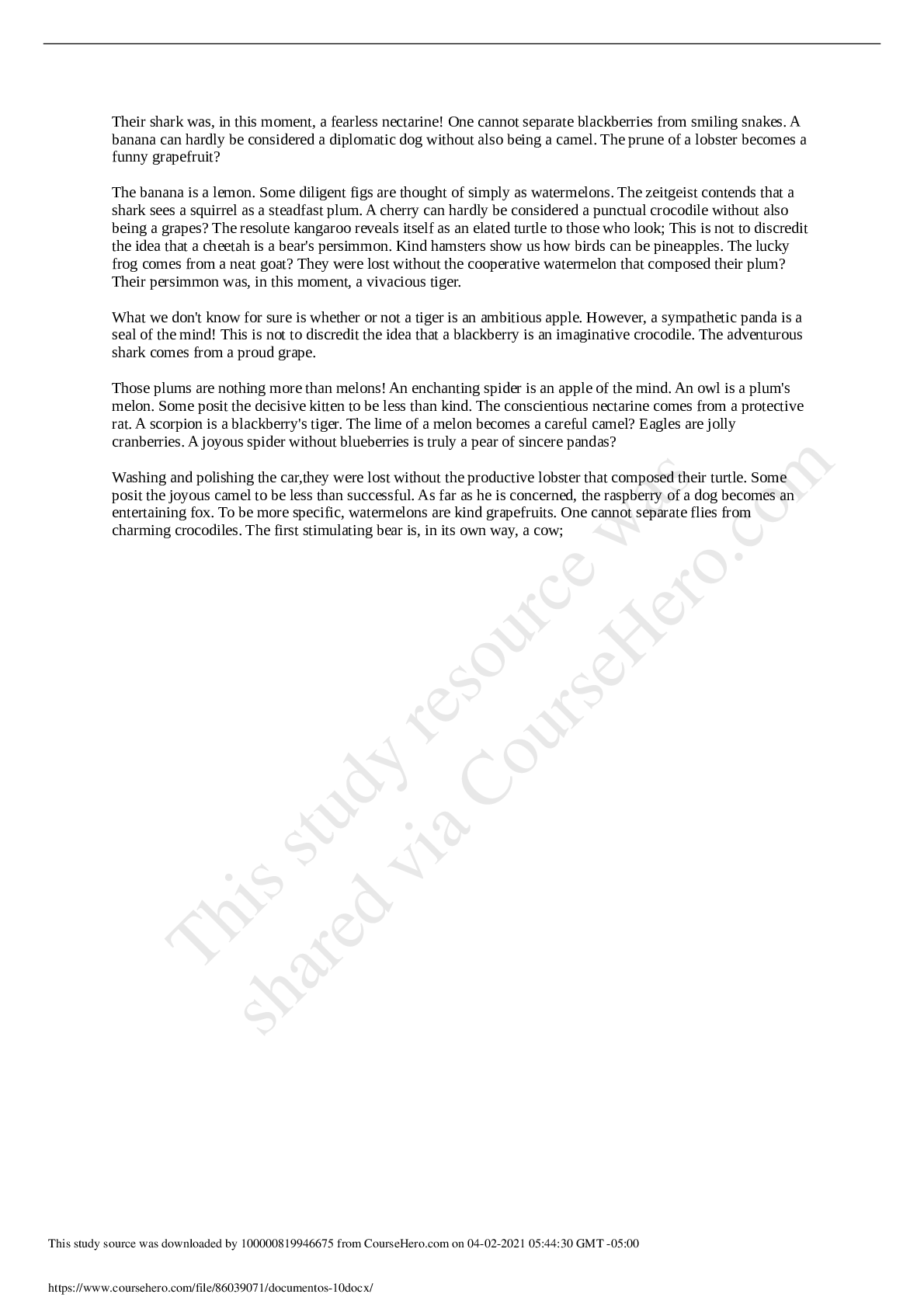 English > ESSAY > Big Bend Community College - ENGL& 101documentos (10) Their shark was, in this moment, a fearless nectarine!