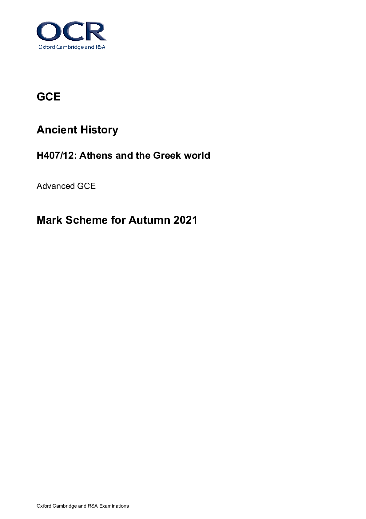 HistoryA/As Level Mark Scheme  > > GCE Ancient History H407/12: Athens and the Greek world Advanced GCE Mark Scheme for Autumn 2021