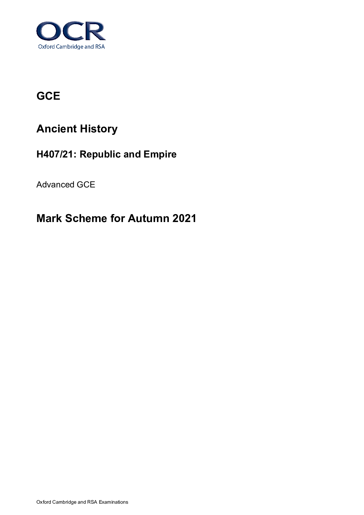HistoryA/As Level Mark Scheme  > > GCE Ancient History H407/21: Republic and Empire Advanced GCE Mark Scheme for Autumn 2021