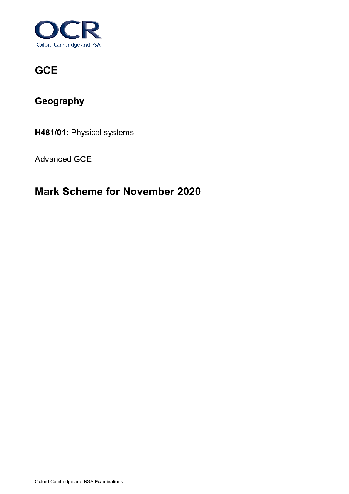Geography > A/As Level Mark Scheme > A Level Geography_H481/01 Mark Scheme Nov 2020 | Physical Systems