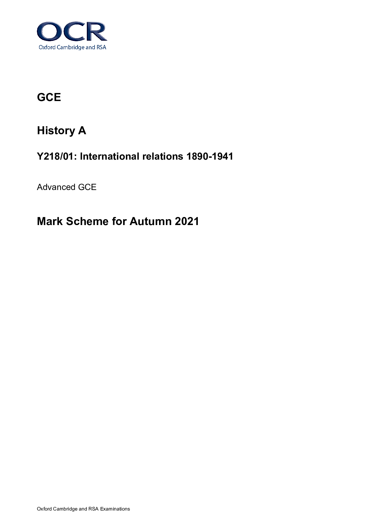History > A/As Level Mark Scheme > > GCE History A Y218/01: International relations 1890-1941 Advanced GCE Mark Scheme for Autumn 2021