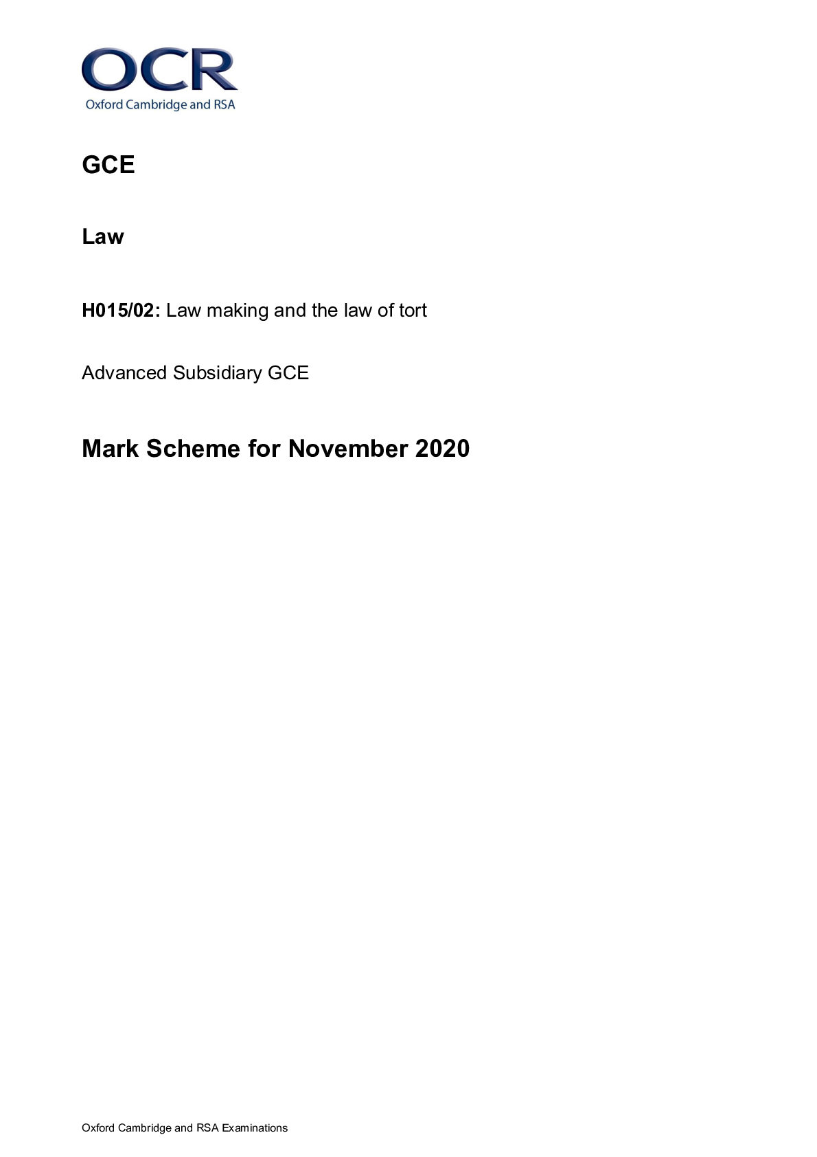 OCR 2024 GCE Law H418/01: The legal system and criminal law A Level Question paper and Mark Scheme Merged