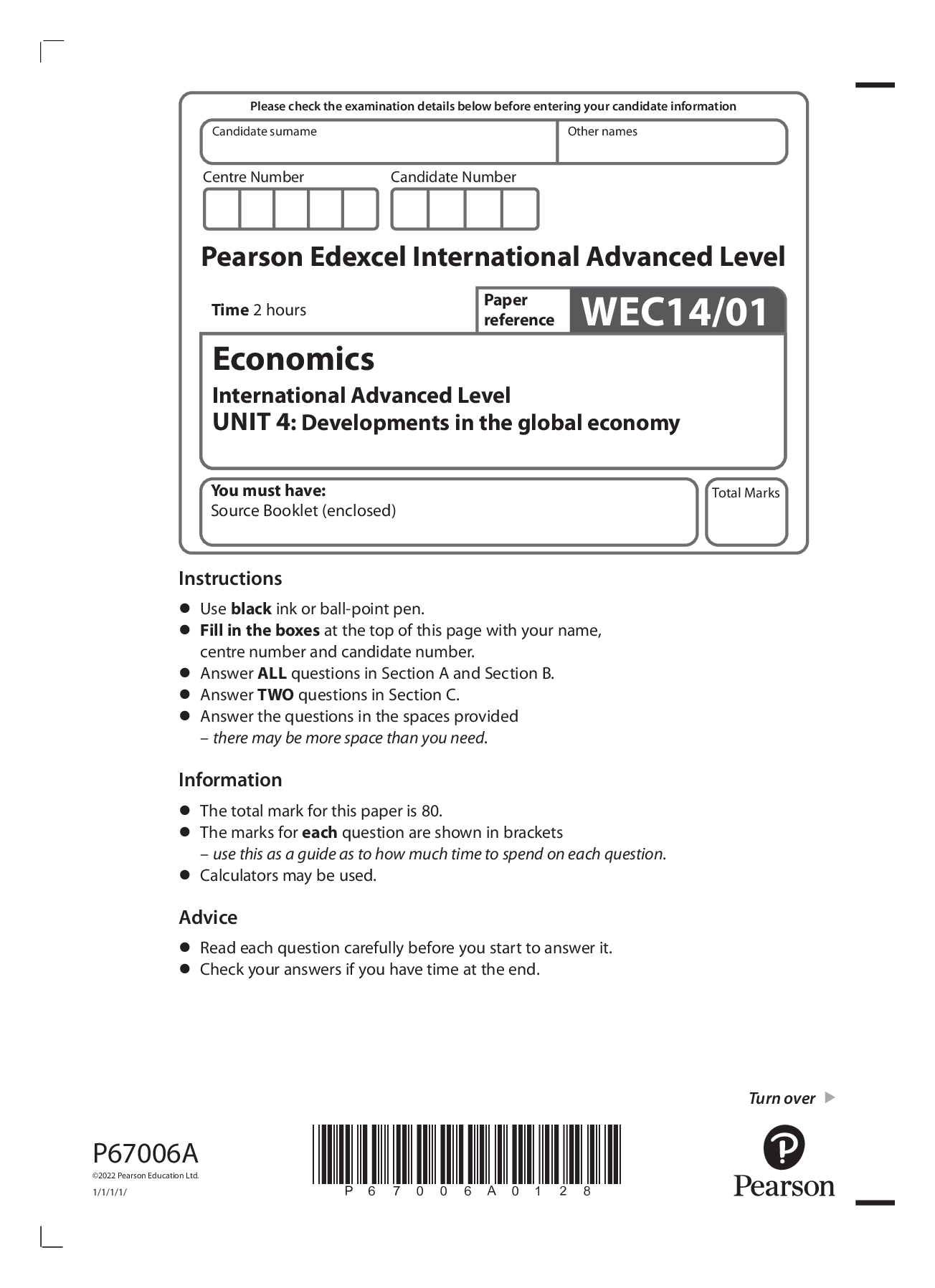 Economics > Edexcel Question Paper > Pearson Edexcel International Advanced Level Economics International Advanced Level UNIT 4: Developments in the global economy QUESTION PAPER 2022