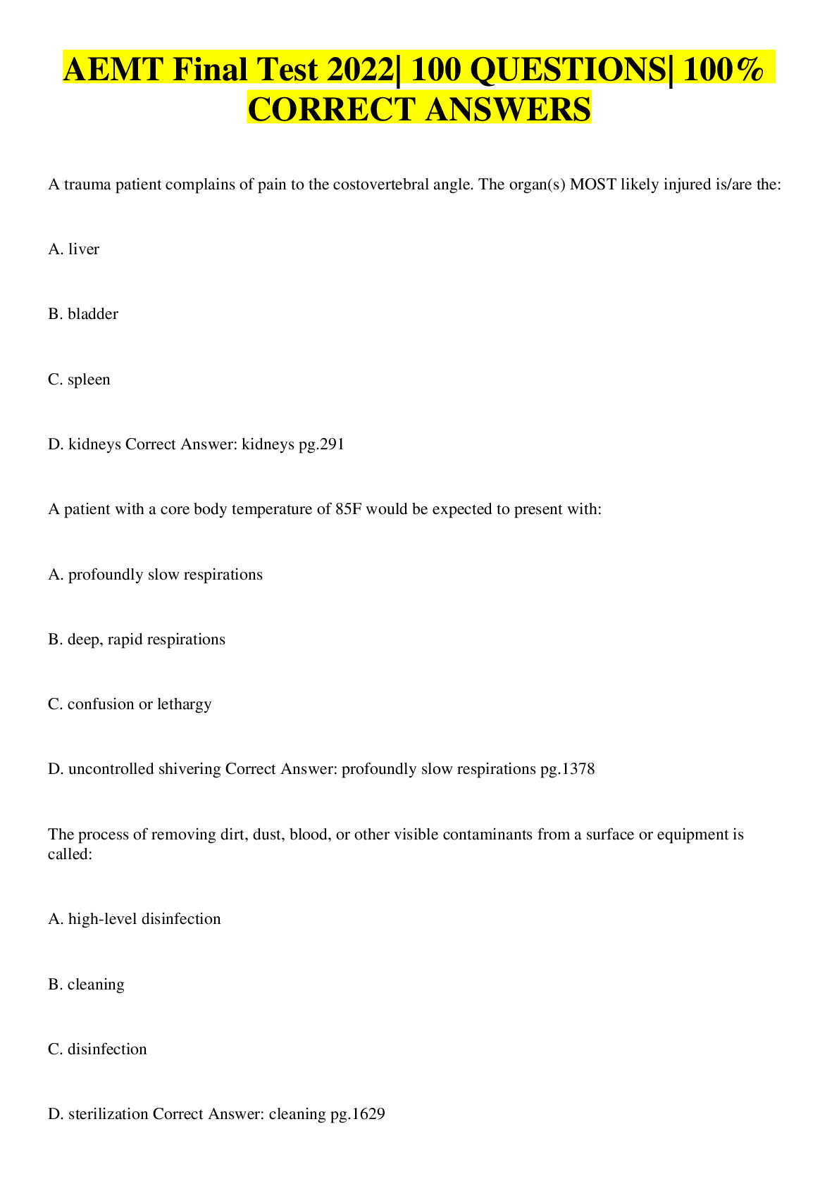 Medical Studies > QUESTION PAPER & MARK SCHEME > AEMT Final Test 2022| 100 QUESTIONS| 100% CORRECT ANSWERS