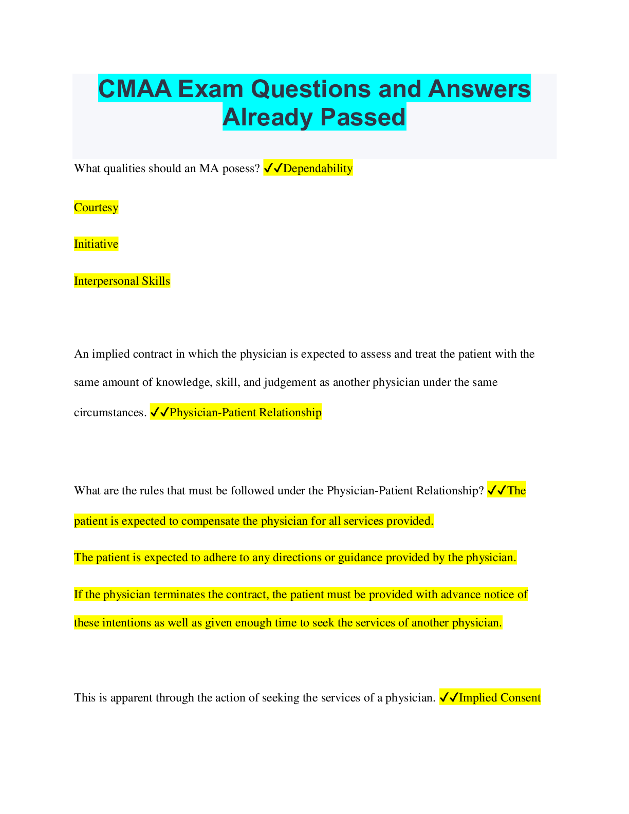 Health Care > QUESTION PAPER & MARK SCHEME > CMAA EXAM REVIEW GUIDE ALREADY GRADED A