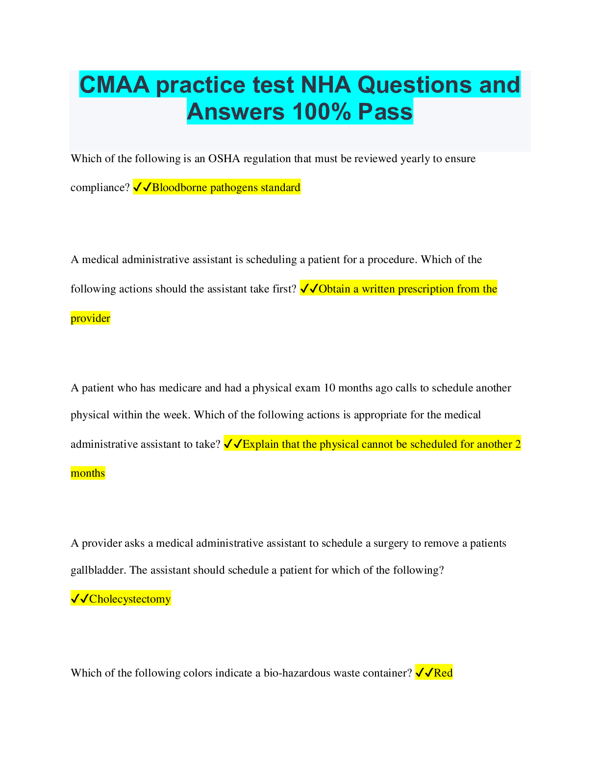 Health Care > QUESTION PAPER & MARK SCHEME > CMAA EXAM REVIEW GUIDE ALREADY GRADED A