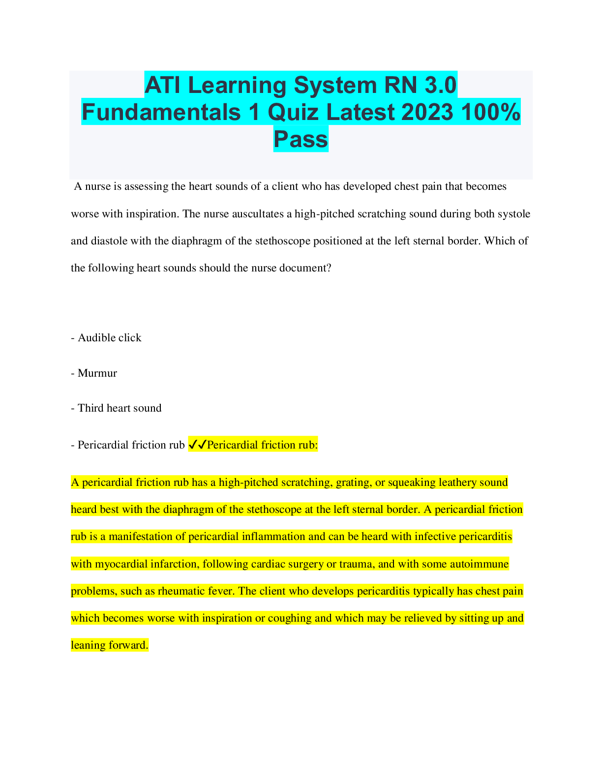Pharmacology > QUESTION PAPER & MARK SCHEME > Pharmacology ATI Learning System Quiz