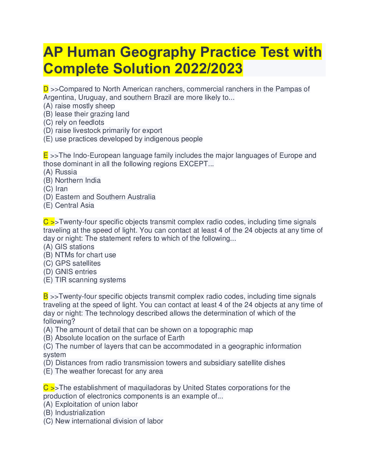 Geography > Test Prep > AP Human Geography Practice Test with Complete Solution 2022/23