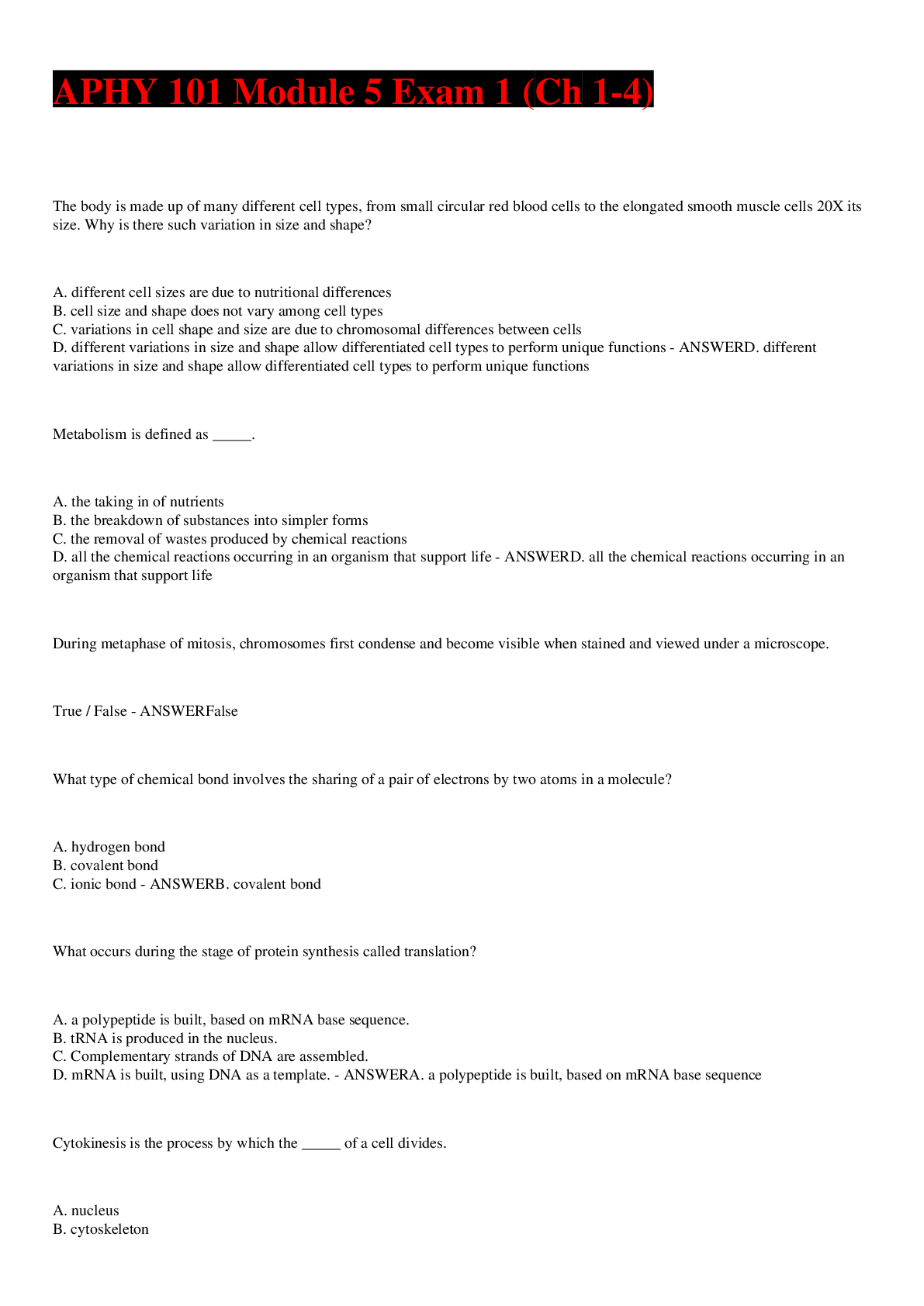 Biology > LAB QUIZ > APHY 101 Module 5 Exam 1 (Ch 1-4)