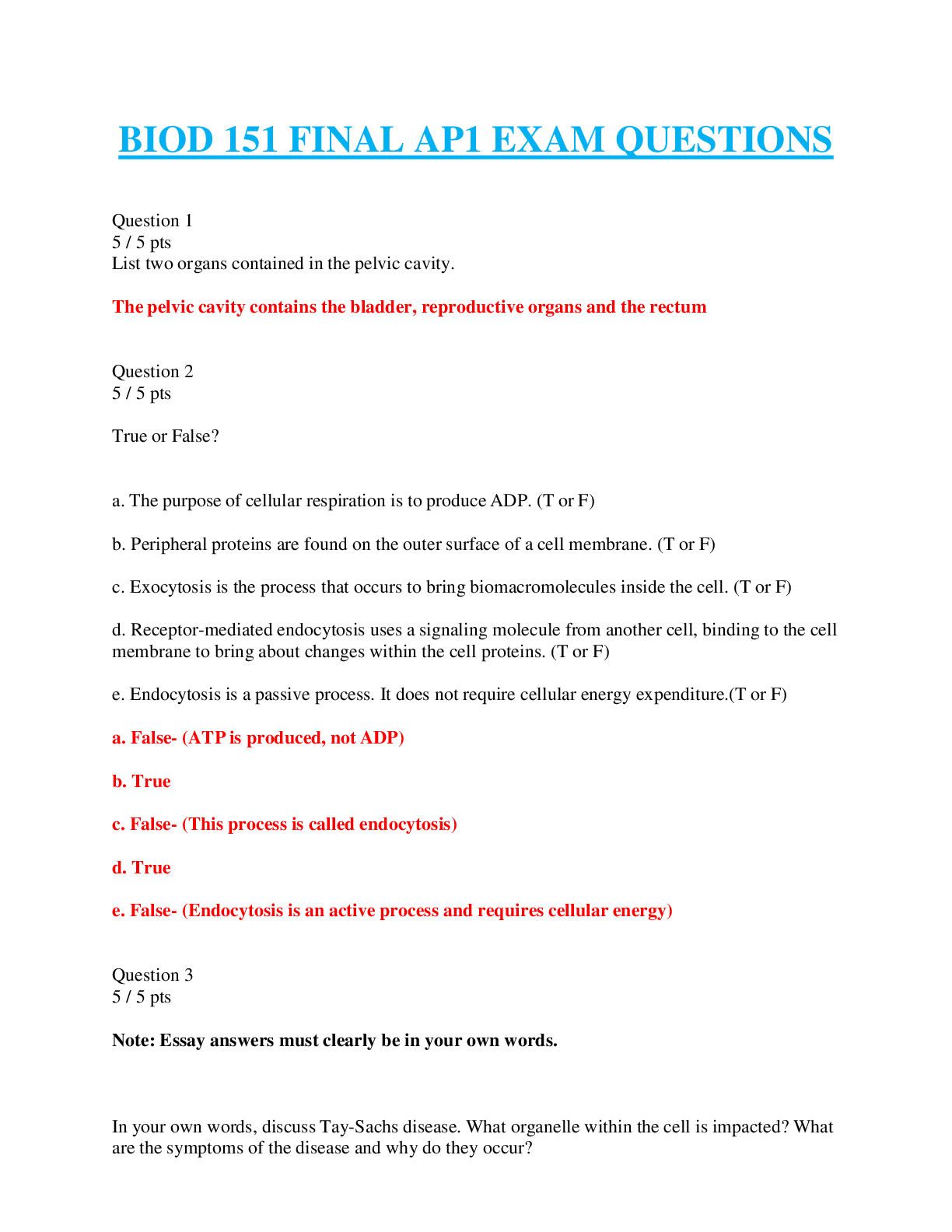 Biology > LAB QUIZ > BIOD 151 Lab Exam 7 | Questions and Answer elaborations | Already GRADED A