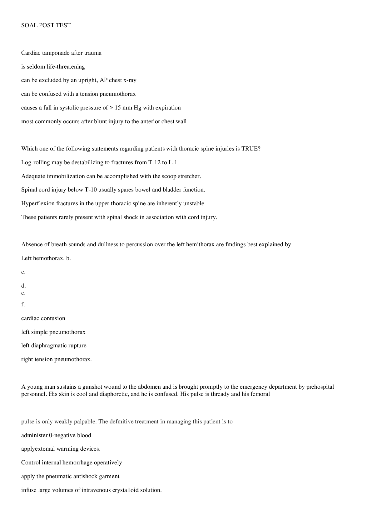 Health Care > Quiz > ATLS POST TEST LATEST 2022 QUESTIONS WITH VERIFIED ANSWERS