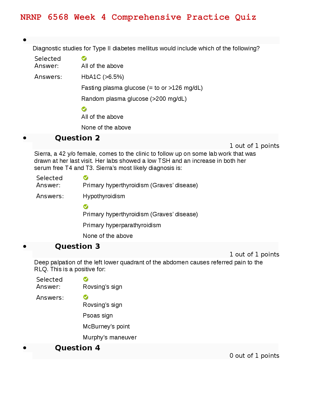 *NURSING > Quiz > NRNP 6568 | Week 4 Comprehensive Practice Quiz — Verified Questions & Answers for Advanced Nursing Clinical Prep