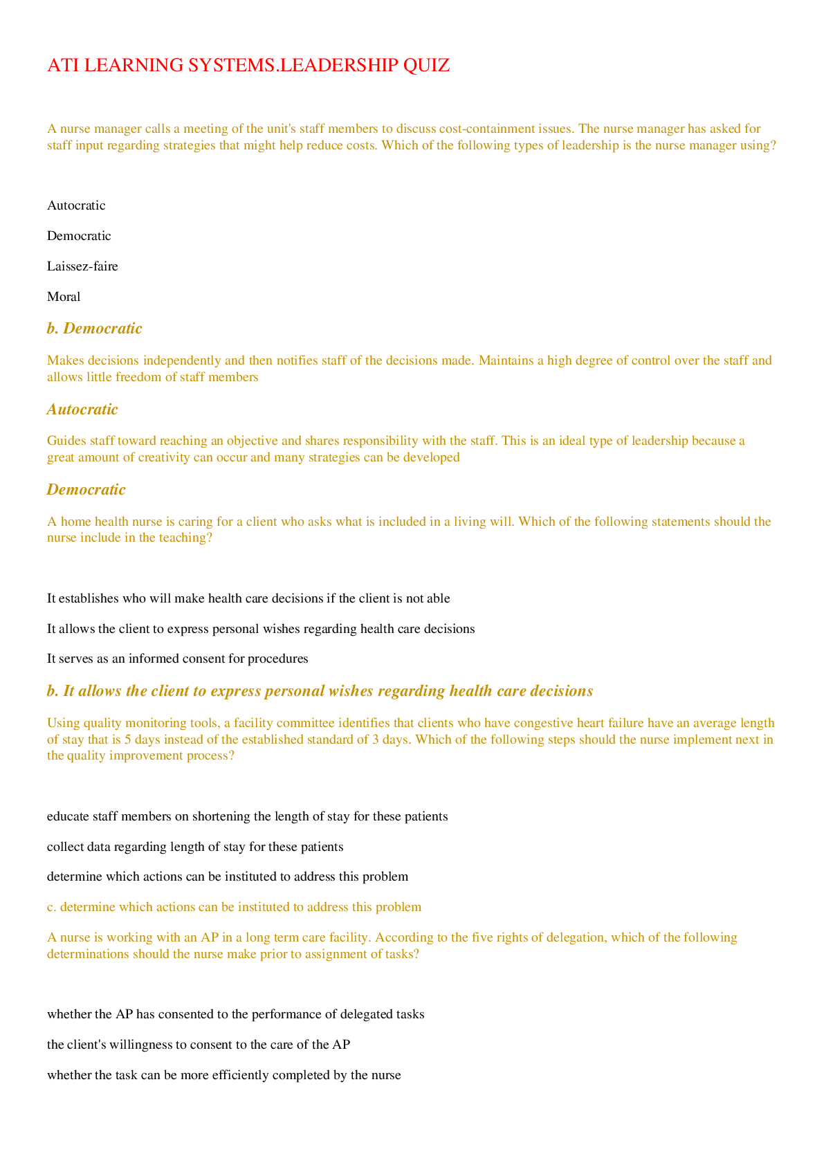 Health Care > Quiz > ATI LEARNING SYSTEMS.LEADERSHIP QUIZ