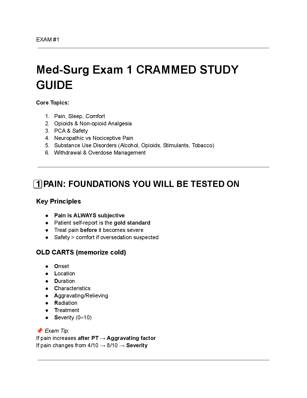 MED SURG > STUDY GUIDE > RNSG 1341 Med-Surg Exam 1 CRAMMED STUDY GUIDE | Complete Solutions, Latest Version