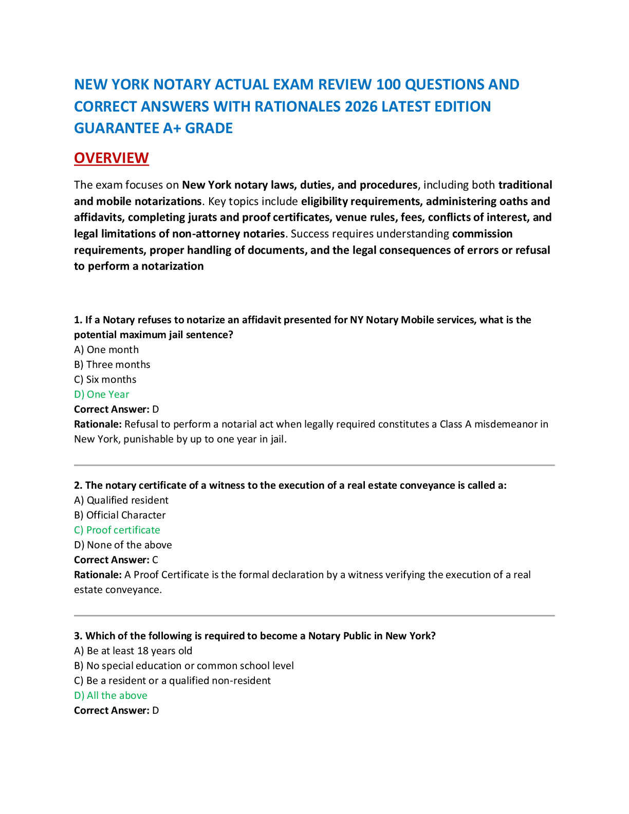 Commercial Law > EXAM REVIEW > NEW YORK ACTUAL EXAM REVIEW 100 QUESTIONS AND CORRECT ANSWERS WITH RATIONALES 2026 LATEST EDITION GUARANTEE A+ GRADE