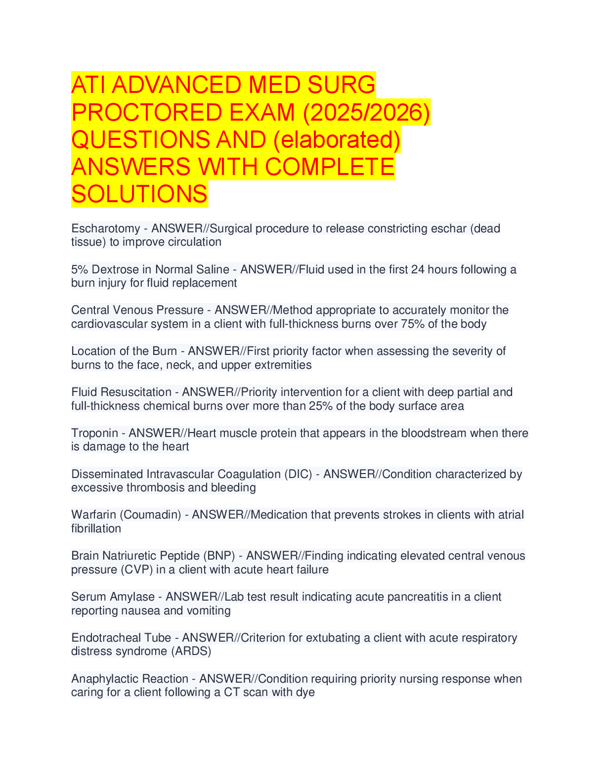 ATI Med Surge/ ATI Medsurg > A-Level Question Paper > ATI Advanced Med Surg Proctored Exam 2025/2026 | Questions & Answers with Complete Solutions