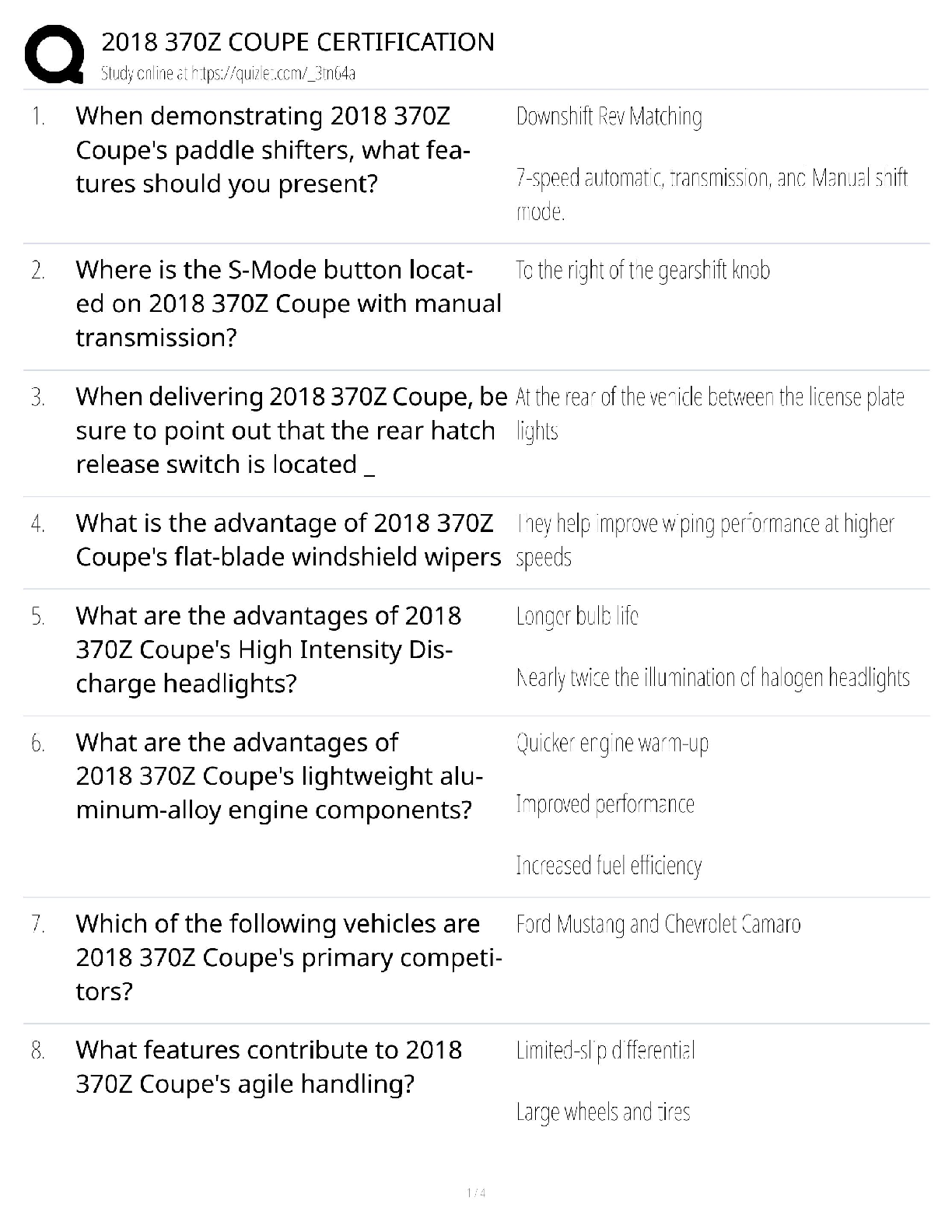 Business Management > QUESTIONS & ANSWERS > 2018 370Z Coupe Certification / Nissan Specialist Guide / 2025 Update / Score 100%