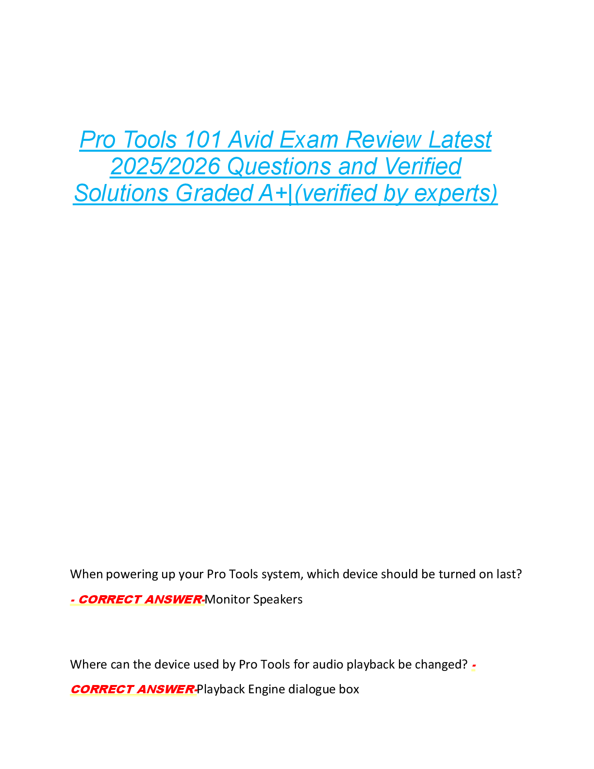 *NURSING > EXAM > Pro Tools 101 Avid Exam Review Latest 2025/2026 Questions and Verified Solutions Graded A+|(verified by experts)