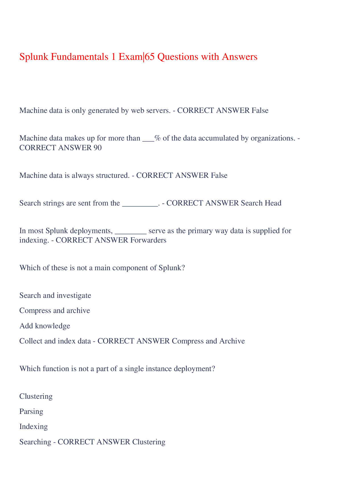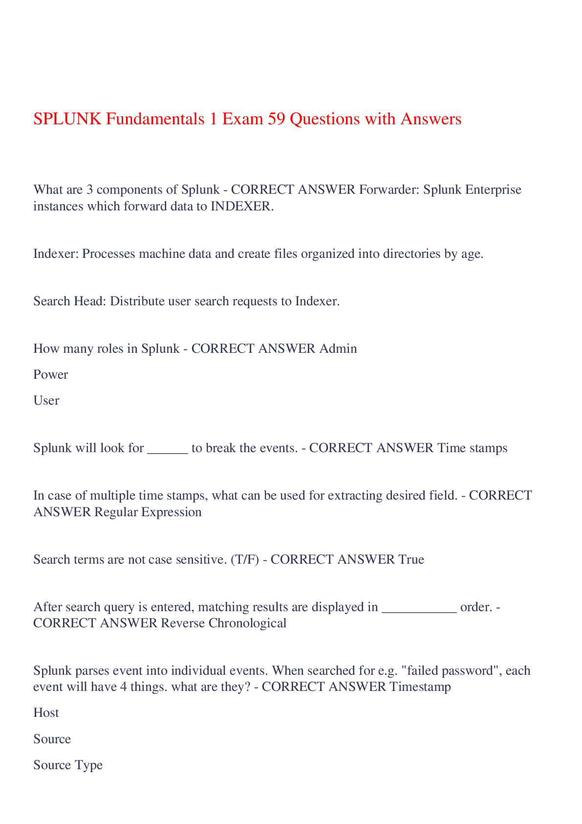 Business > EXAM > SPLUNK Fundamentals 1 Exam 59 Questions with Answers,100% CORRECT