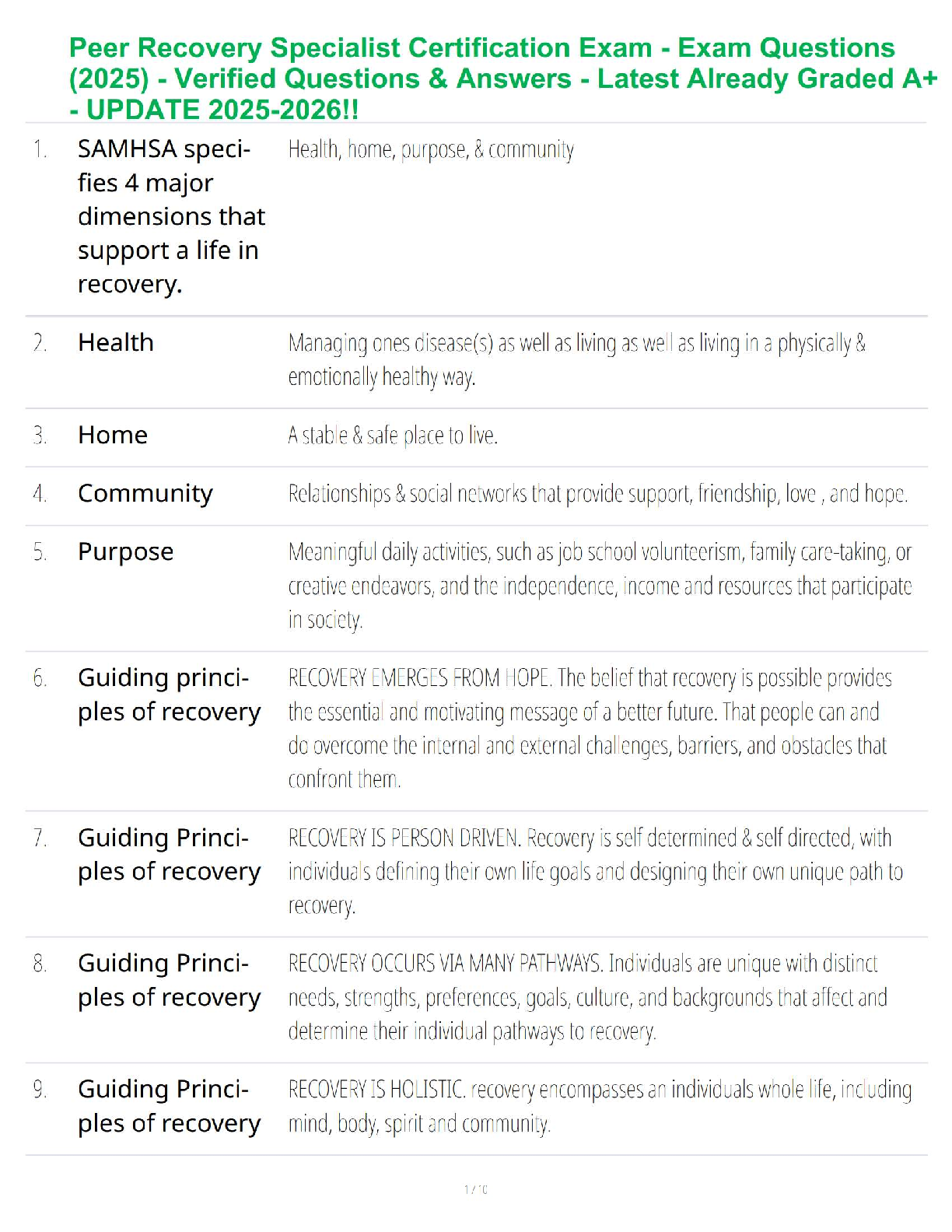 Health Care > QUESTIONS & ANSWERS > Peer Recovery Specialist Certification Exam - Exam Questions (2025) - Verified Questions & Answers - Latest Already Graded A+ - UPDATE 2025-2026!!
