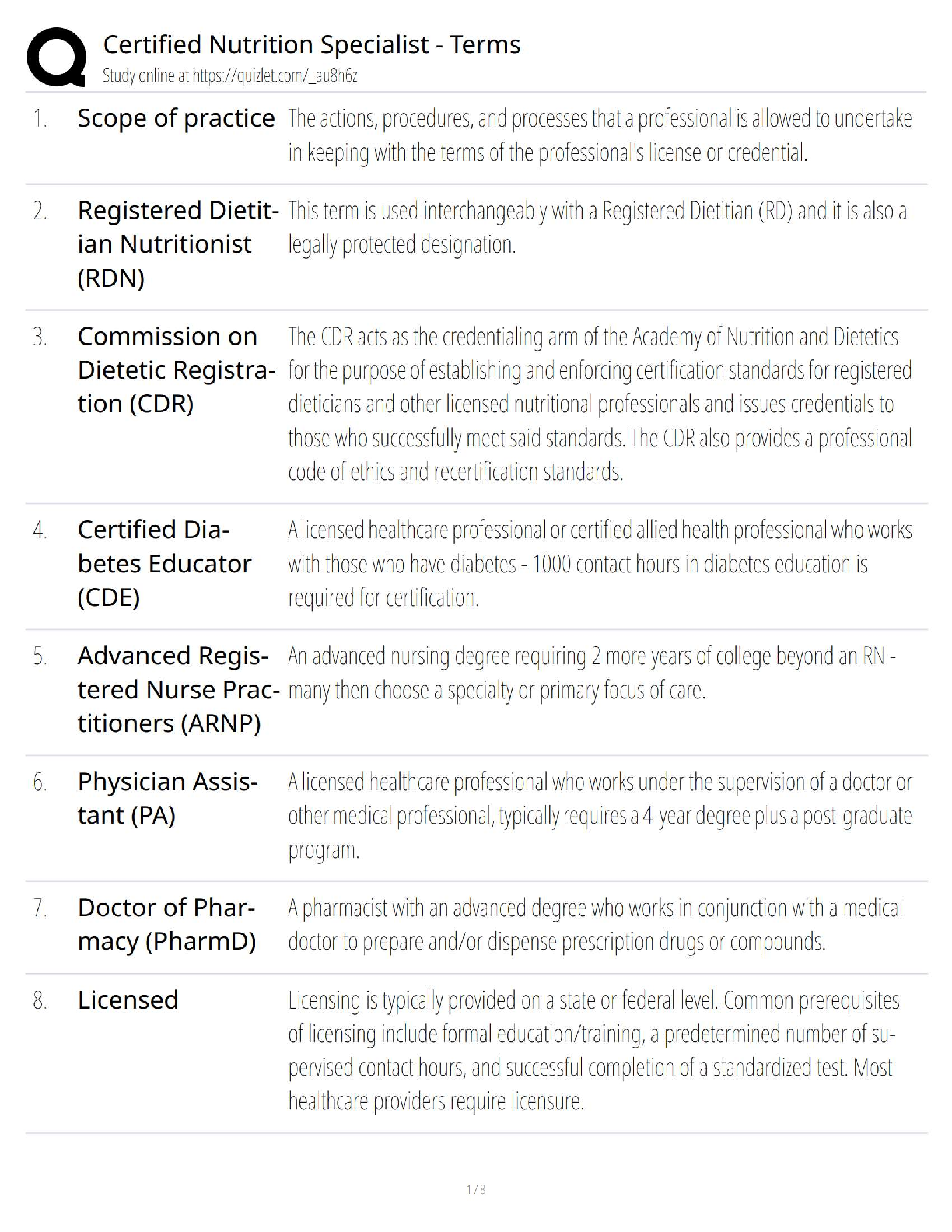Food and Nutrition > QUESTIONS & ANSWERS > Certified Nutrition Specialist (CNS) Exam / Terms & Definitions / 2025 Update to Score 100%