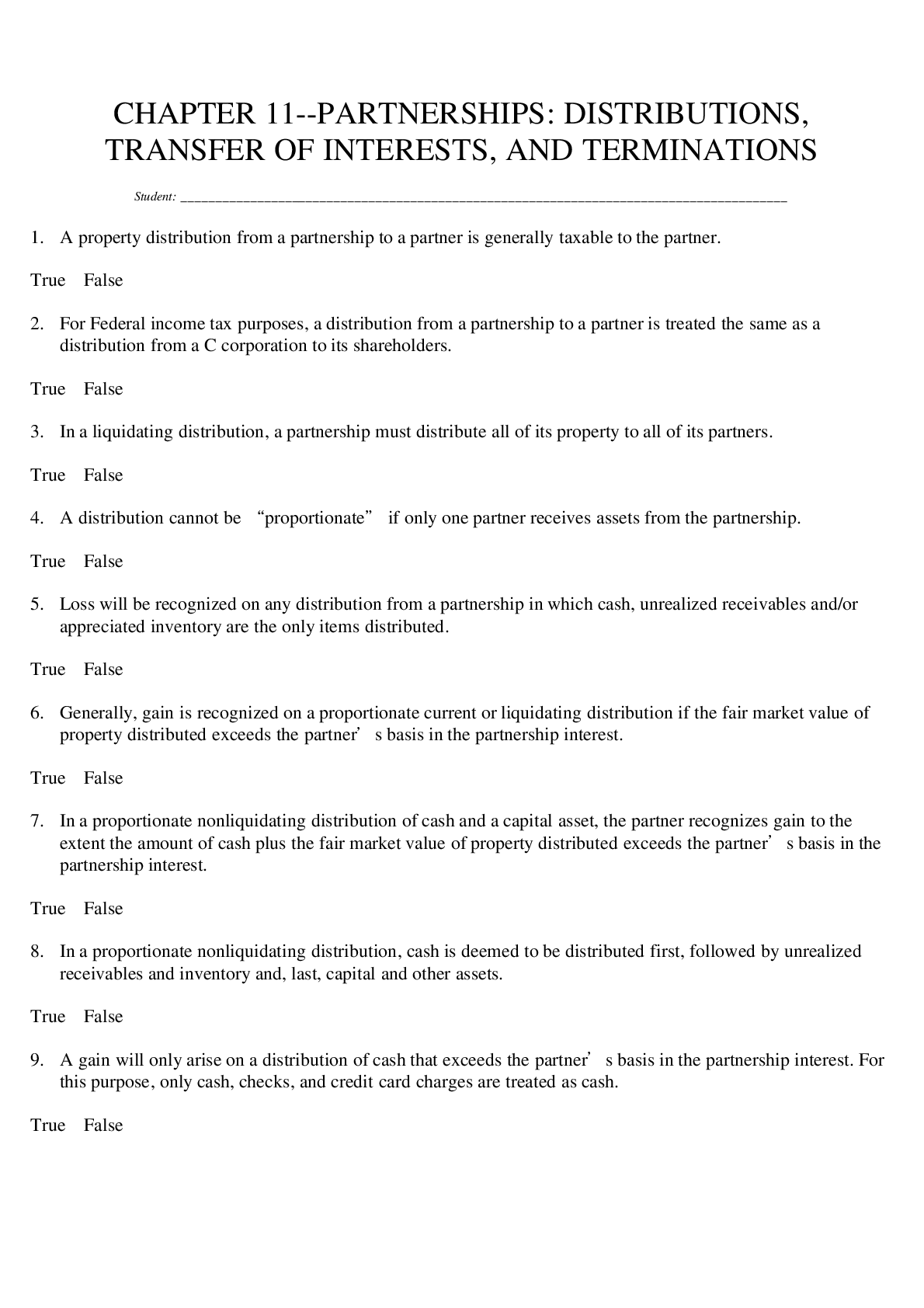 Business > QUESTIONS & ANSWERS > CHAPTER 11--PARTNERSHIPS: DISTRIBUTIONS, TRANSFER OF INTERESTS, AND TERMINATIONS