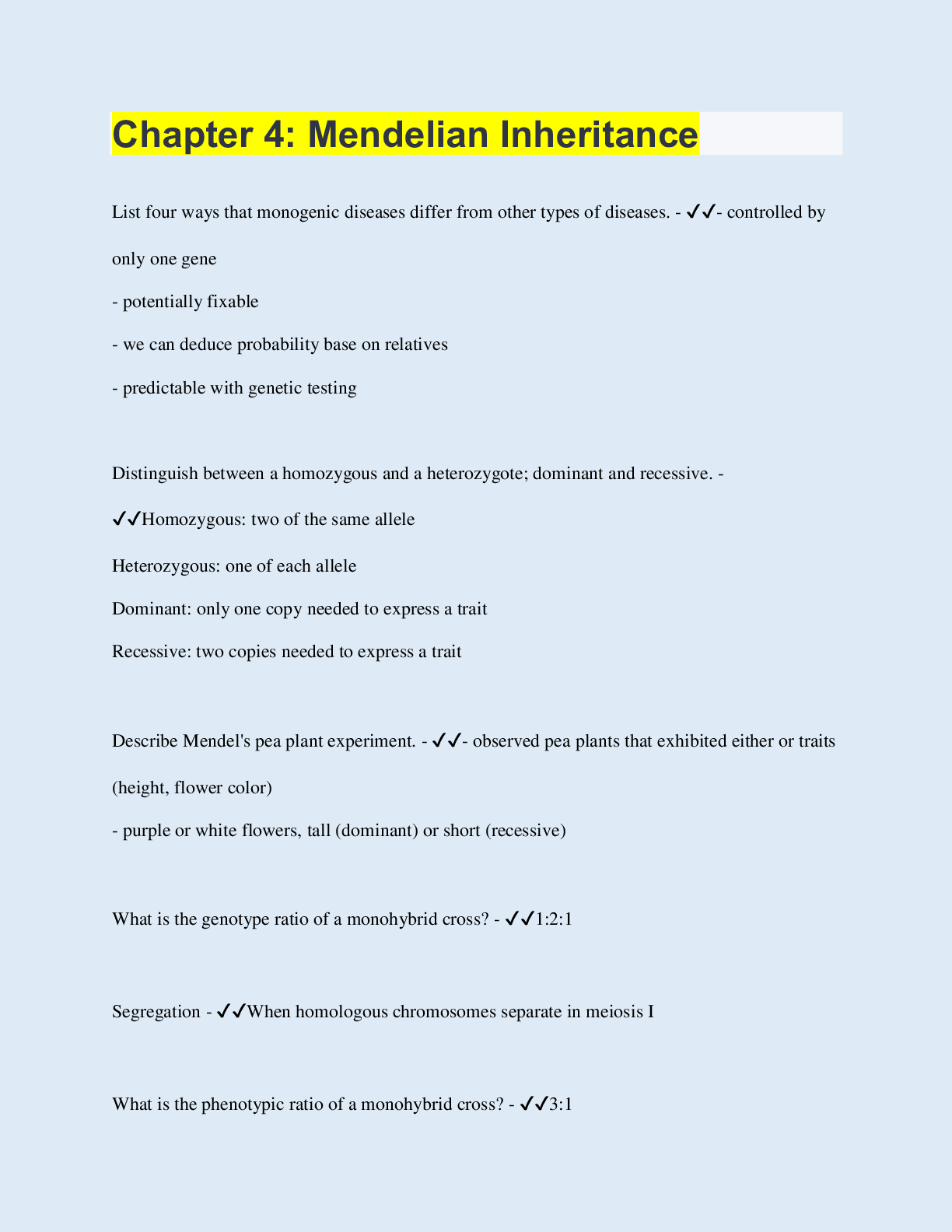 Biology > EXAM > Chapter 4: Mendelian Inheritance | Questions with 100% Correct Answers | Updated | Download to score A+