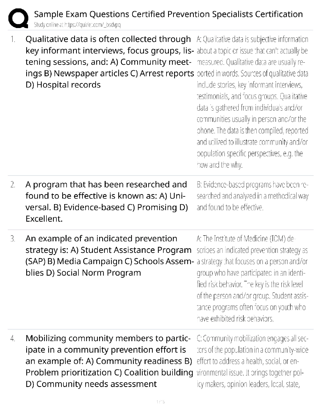 Clinical Psychology > QUESTIONS & ANSWERS > Certified Prevention Specialist / Sample Exam Questions 2025 / New Version / Score 100%
