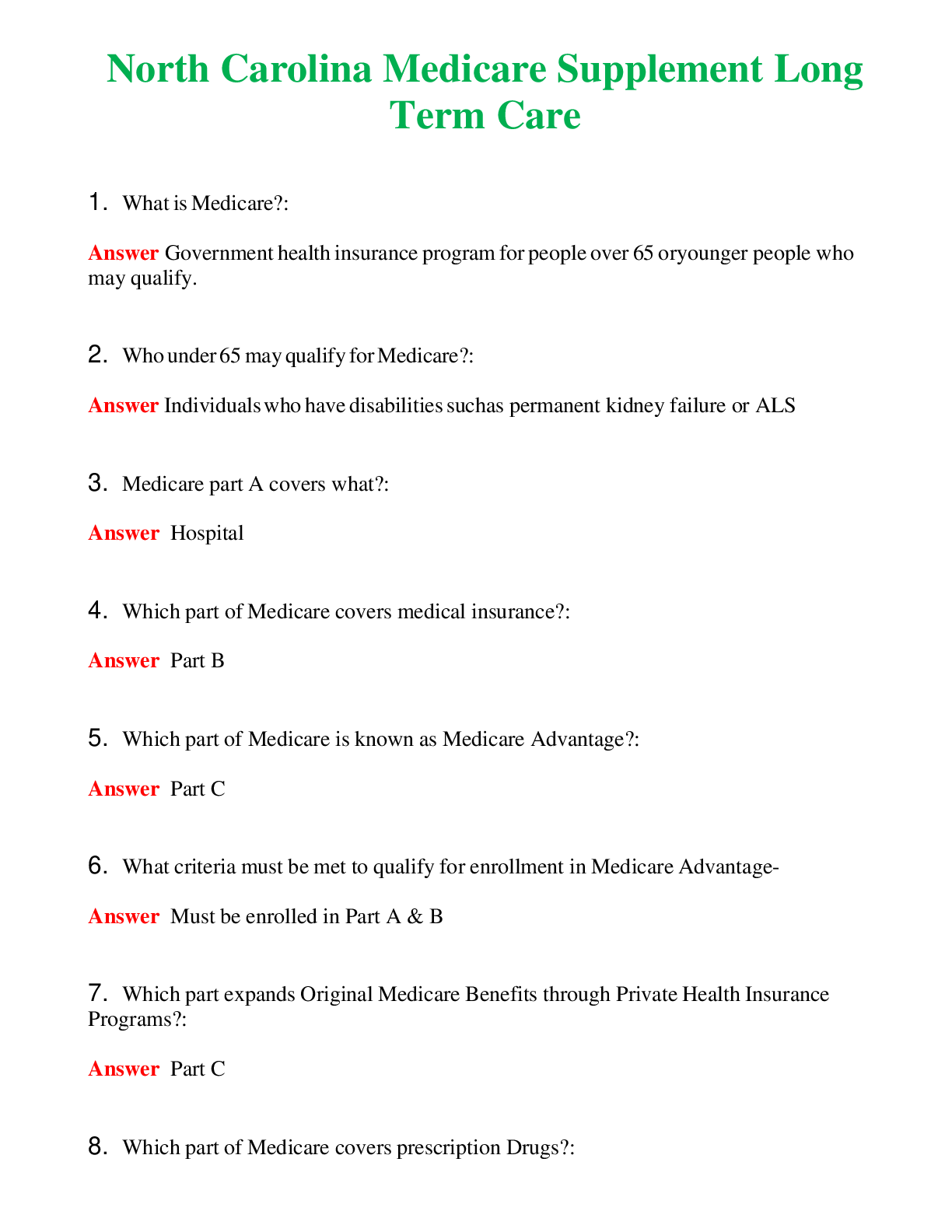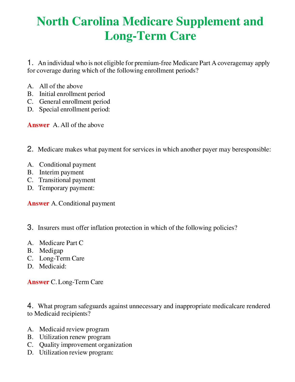 *NURSING > EXAM > North Carolina Medicare Supplement Long Term Care | Actual Questions and Verified Answers ( Included ) 100% Correct