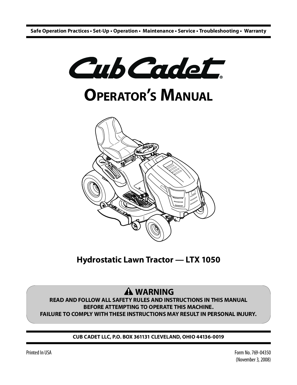 Education > Manual > CUB CADET LTX1050 LAWNMOWER TRACTOR OPERATOR MANUAL