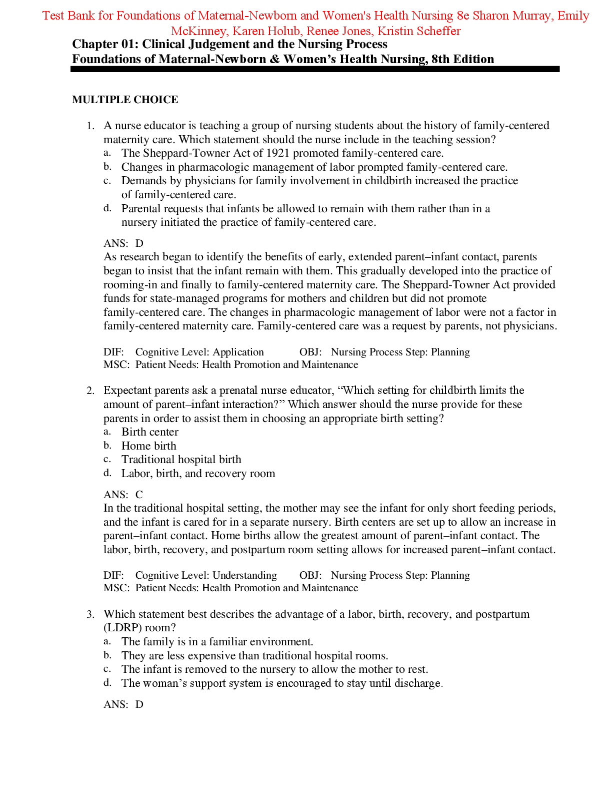 *NURSING > TEST BANKS > Test Bank Foundations of Maternal-Newborn and Women's Health Nursing 8th Edition By Sharon Murray, Emily McKinney, Karen Holub, Renee Jones, Kristin Scheffer