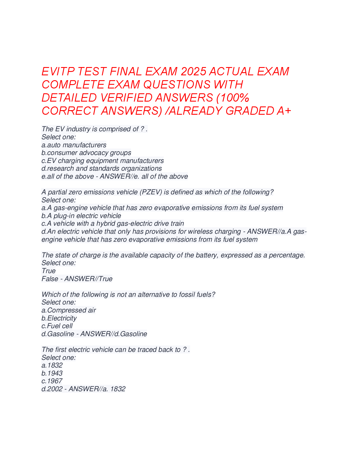 Engineering Mechanics > A-Level Question Paper > EVITP TEST FINAL EXAM 2025 ACTUAL EXAM: Complete Questions & Detailed Verified Answers (100% Correct) | Electric Vehicle Infrastructure Training Program Study Guide