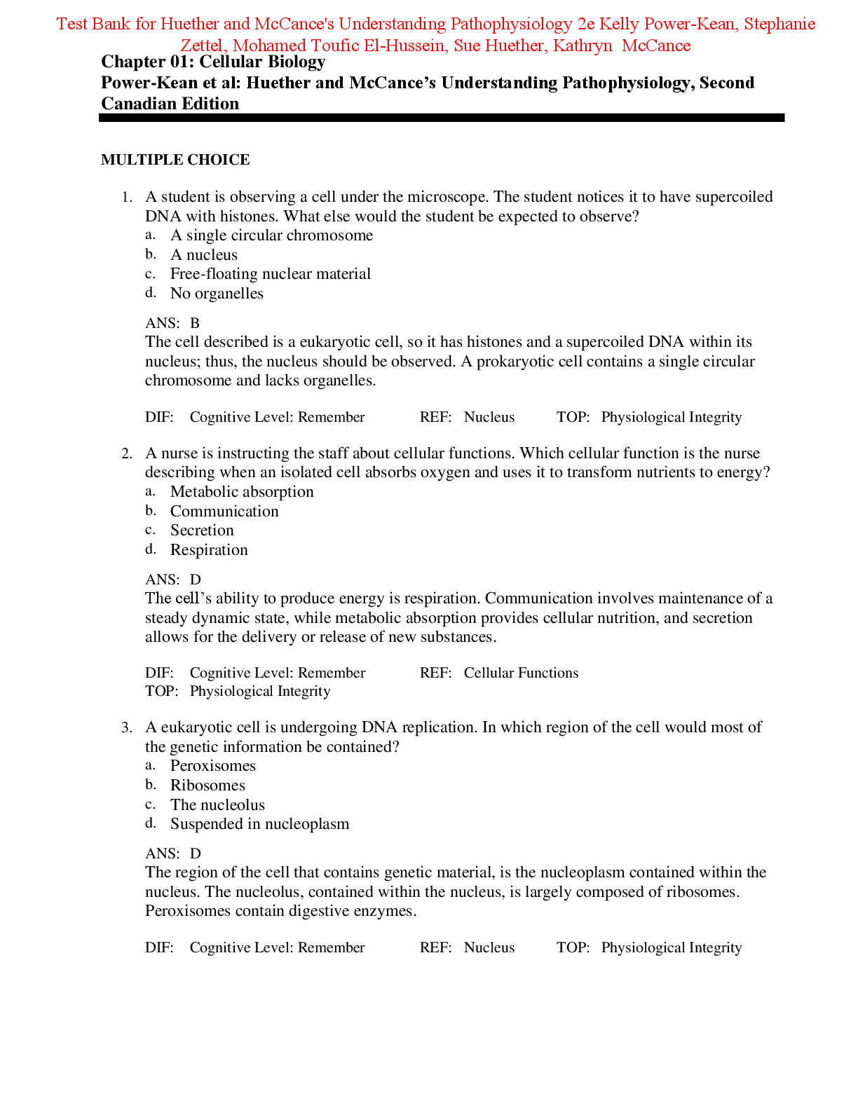 Medical Studies > TEST BANKS > Test Bank Huether and McCance's Understanding Pathophysiology 2nd Edition By Kelly Power-Kean, Stephanie Zettel, Mohamed Toufic El-Hussein, Sue Huether, Kathryn McCance