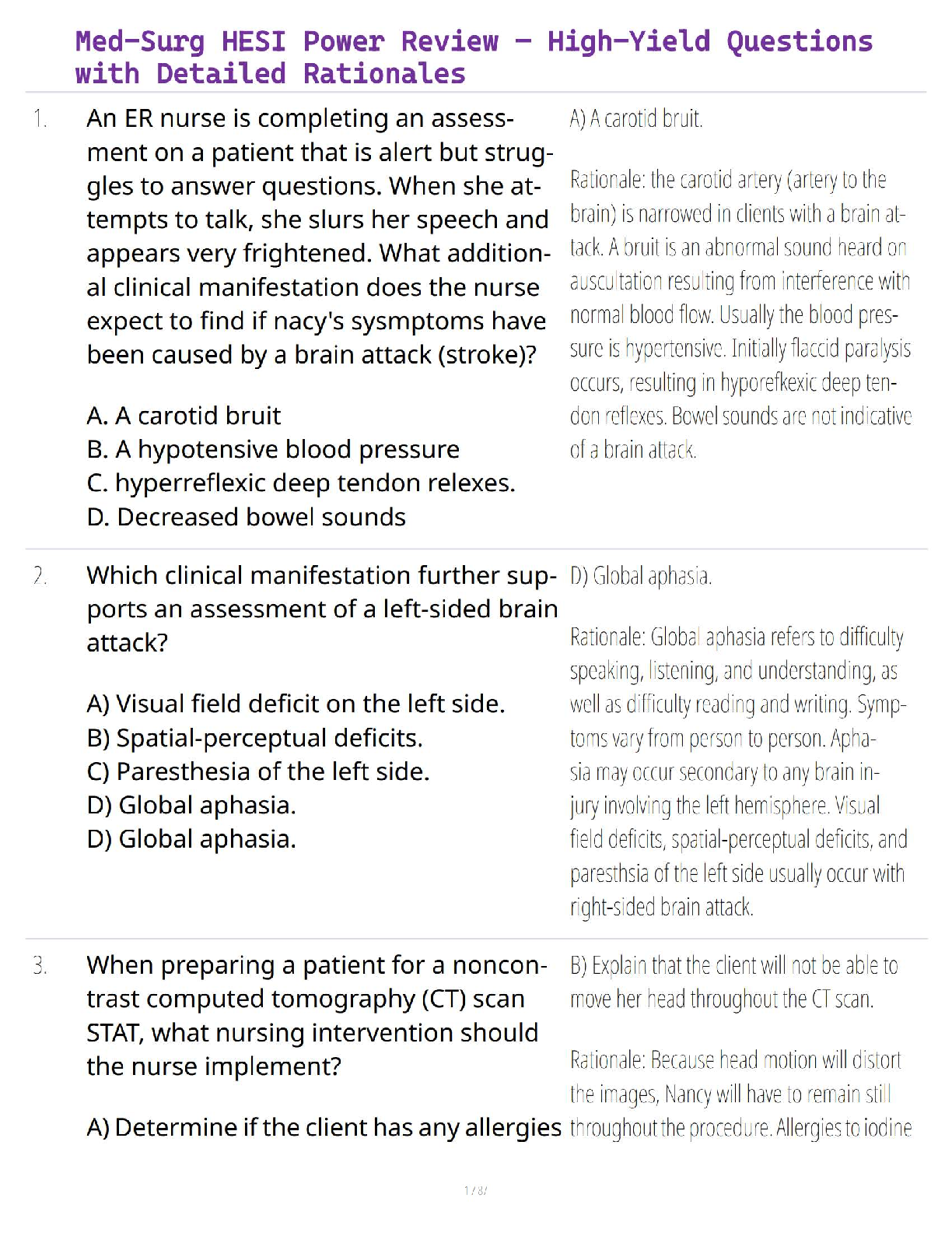 HESI Med Surg > QUESTIONS and ANSWERS > Med-Surg HESI Power Review – High-Yield Questions & Rapid Recall Sheets