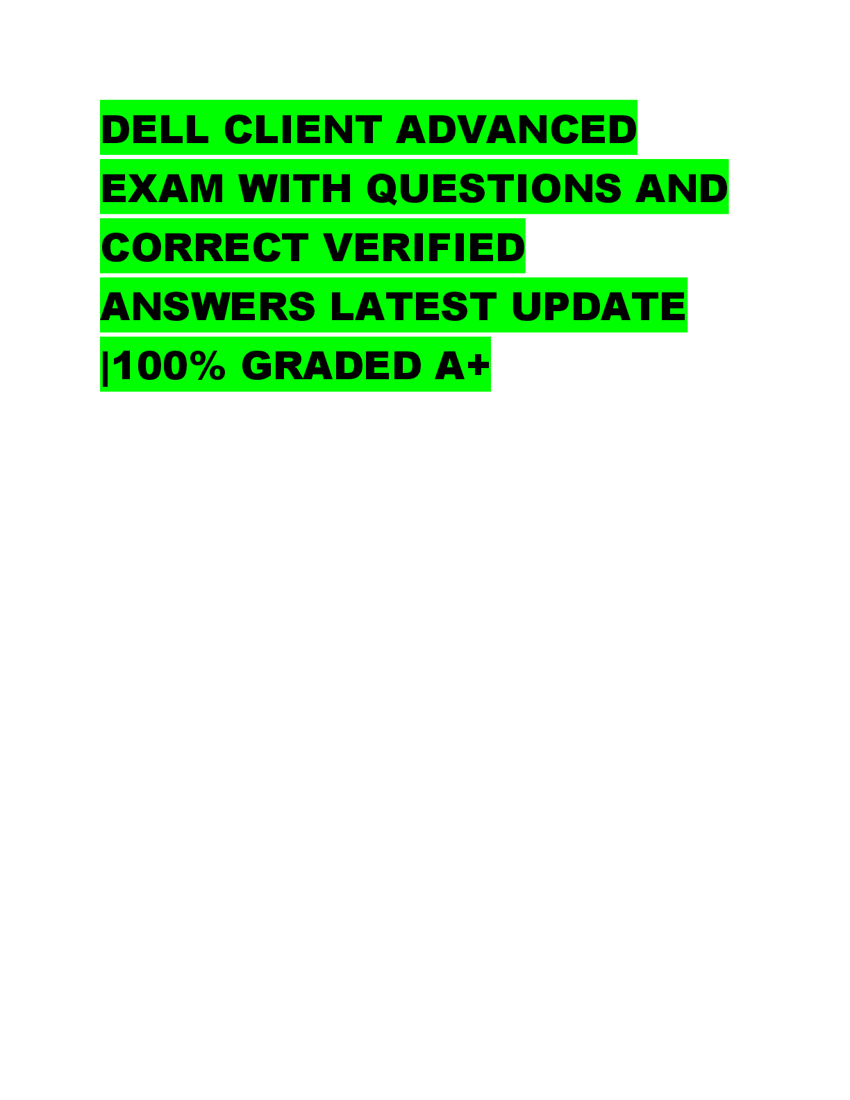 *NURSING > EXAM > DELL CLIENT ADVANCED EXAM WITH QUESTIONS AND CORRECT VERIFIED ANSWERS LATEST UPDATE 100% GRADED A+
