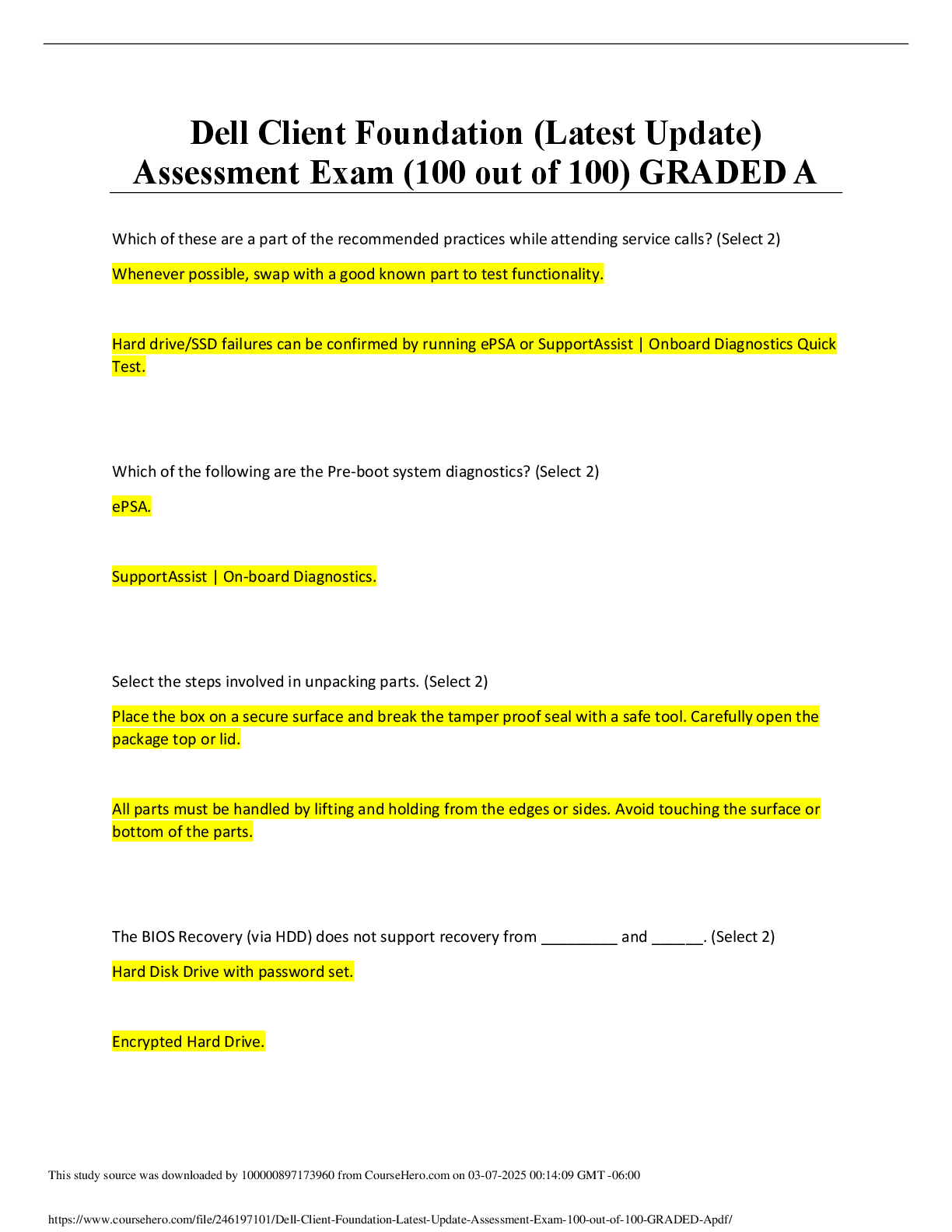 *NURSING > EXAM > Dell Client Foundation (Latest Update) Assessment Exam (100 out of 100) GRADED A