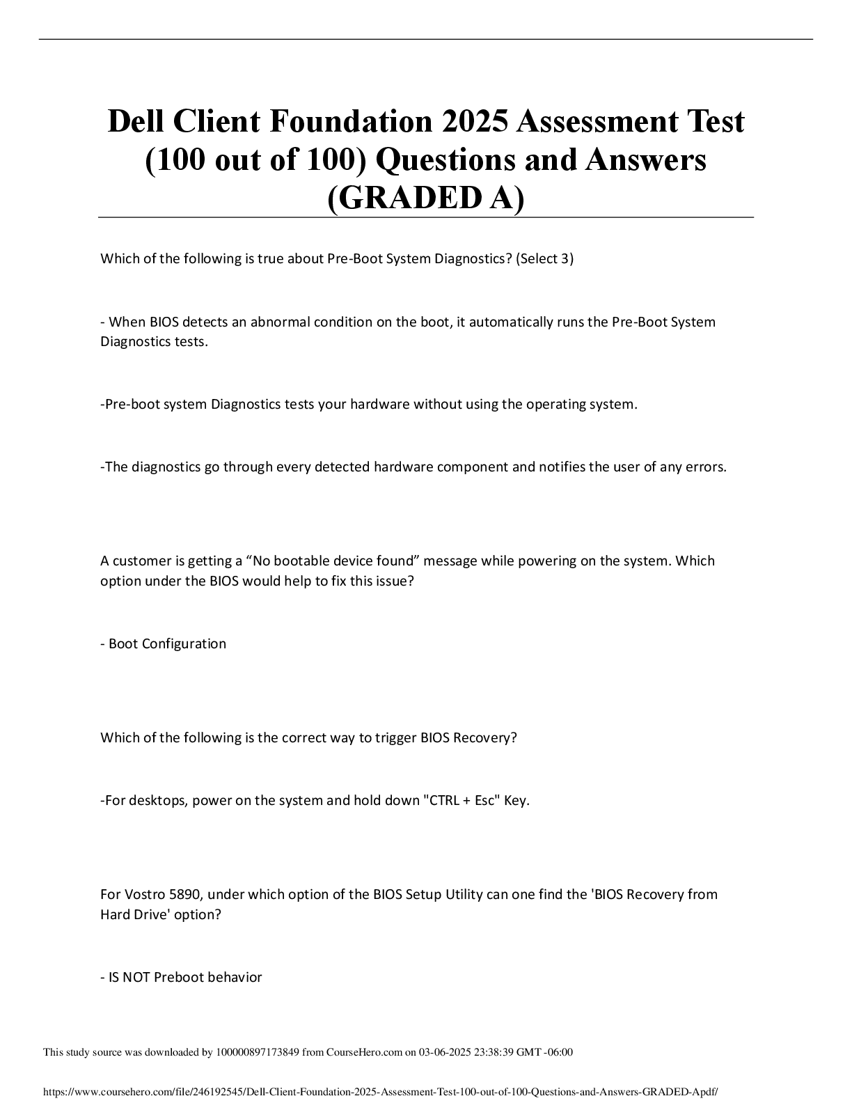 *NURSING > EXAM > Dell Client Foundation 2025 Assessment Test (100 out of 100) Questions and Answers (GRADED A)