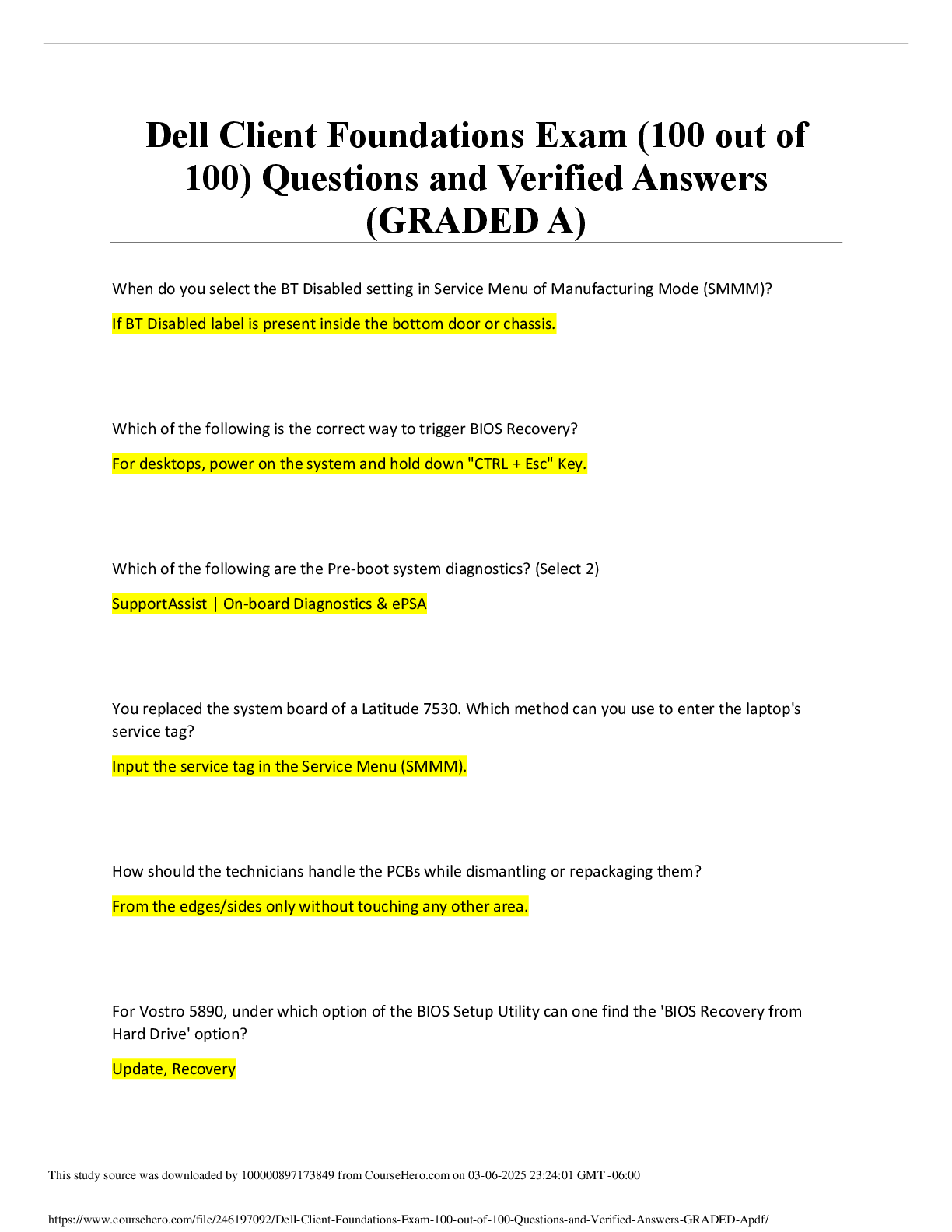 *NURSING > EXAM > Dell Client Foundations Exam (100 out of 100) Questions and Verified Answers (GRADED A)