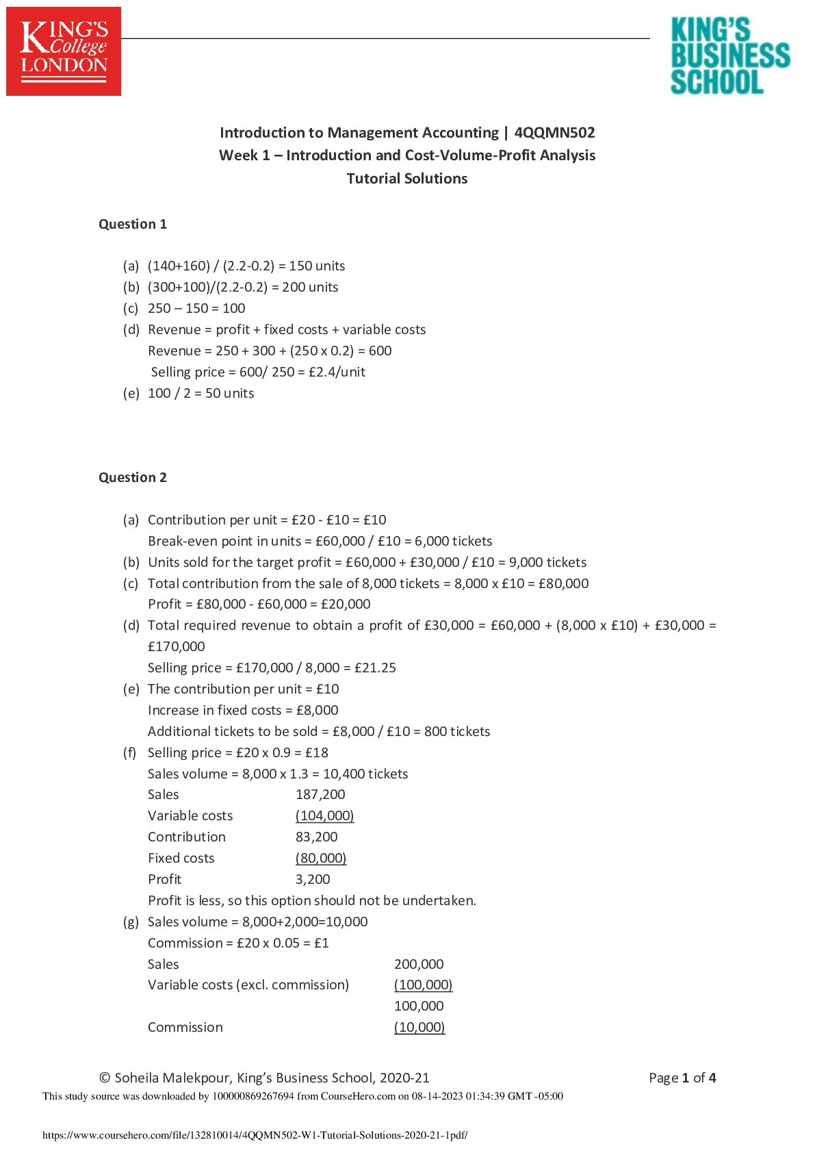 *NURSING > EXAM PROCTORED > Kings College 4QQMN502 W1 Tutorial Solutions 2020-21