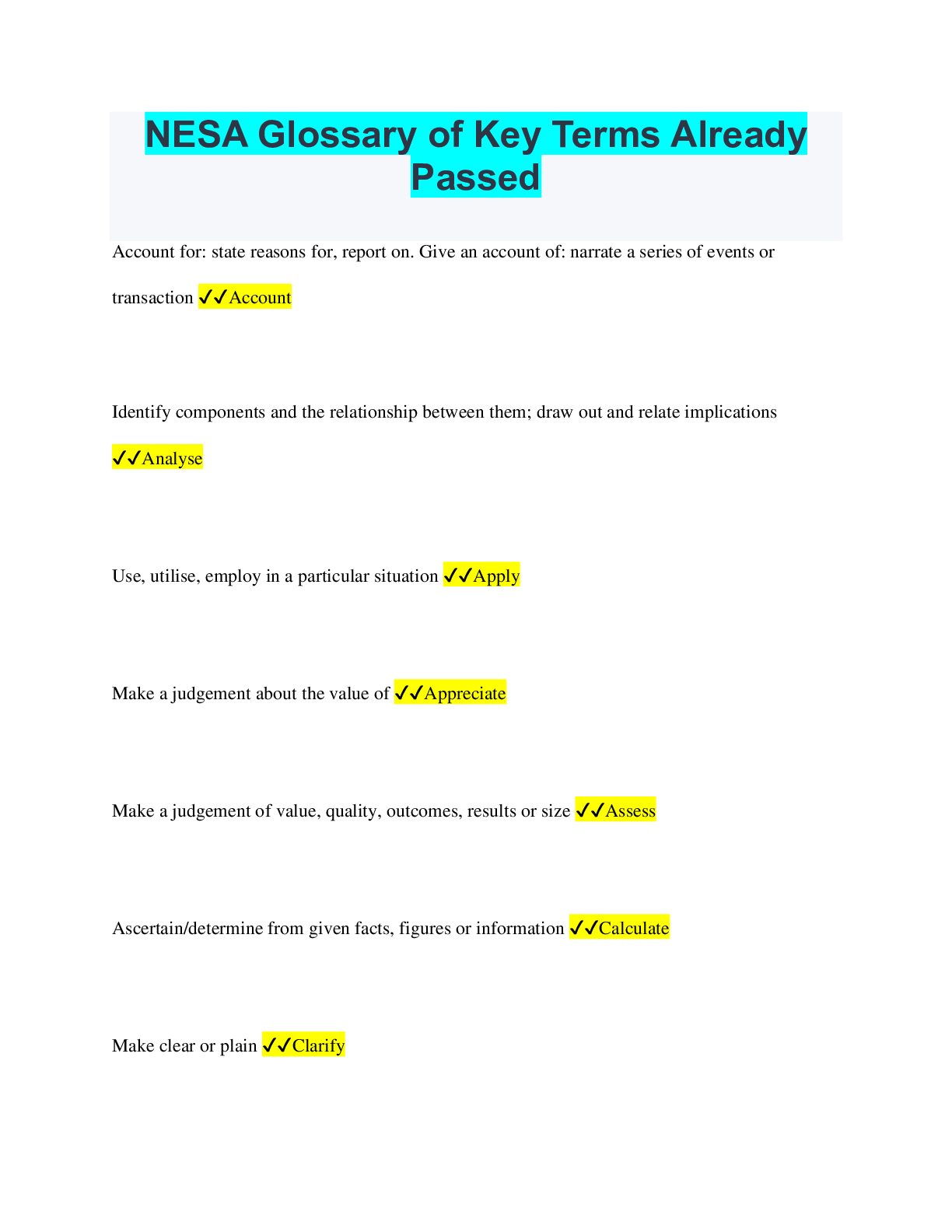 Education > QUESTIONS & ANSWERS > NESA Glossary of Key Terms Already Passed