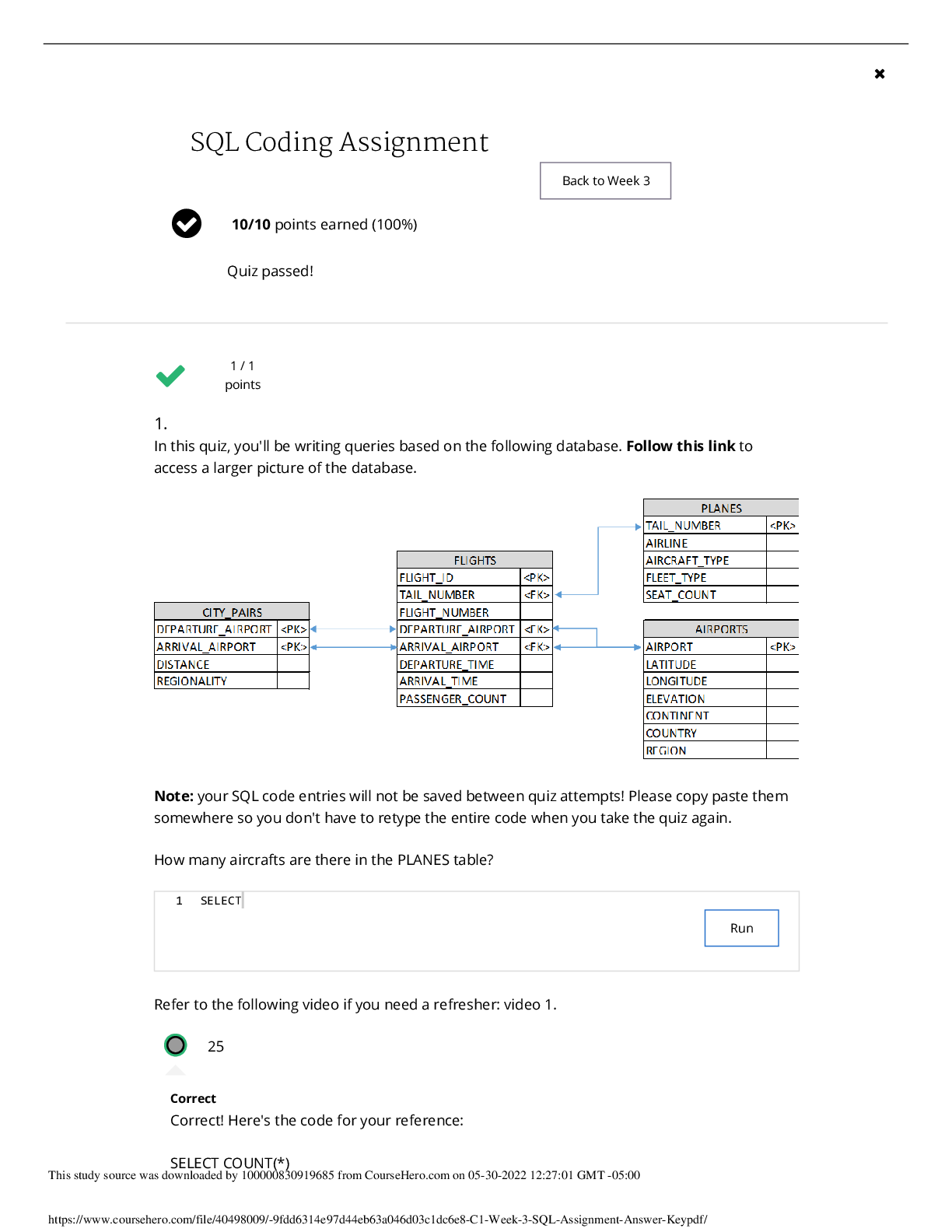 Computer Networking > QUESTIONS & ANSWERS > Coursera BIG DATA 1 SQL Coding Assignment 10/10 points earned (100%) Quiz passed!